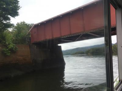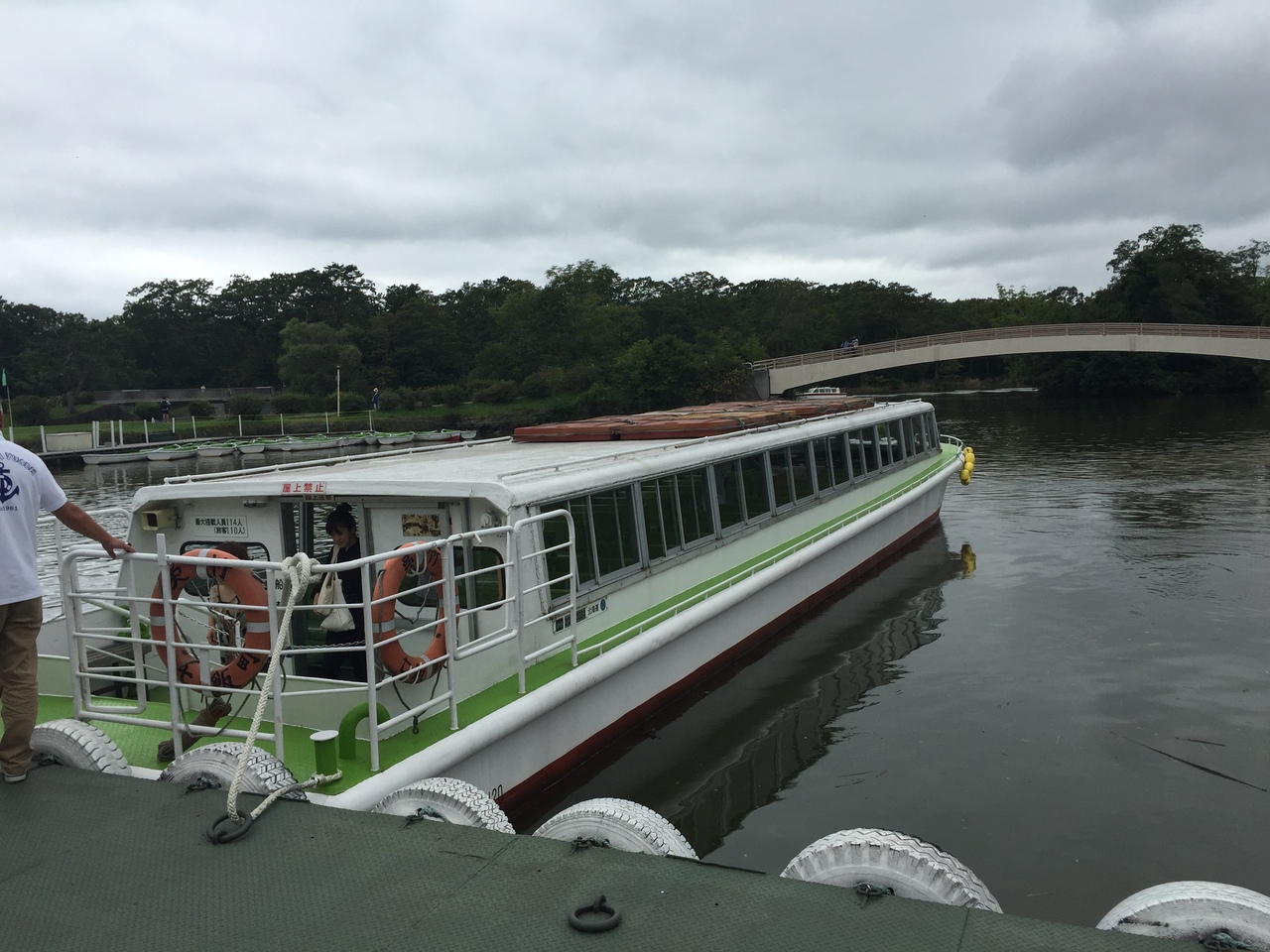 大沼から小沼へは 橋をくぐるため 車高の低い船になっている。