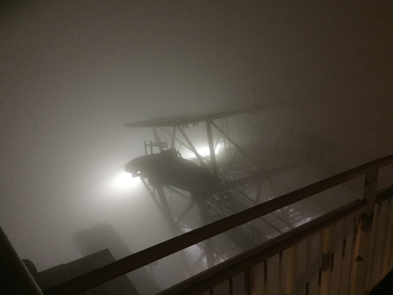 2合目までは綺麗に見えた夜景も 展望台はズッポリと霧に覆われ視界ゼロ。