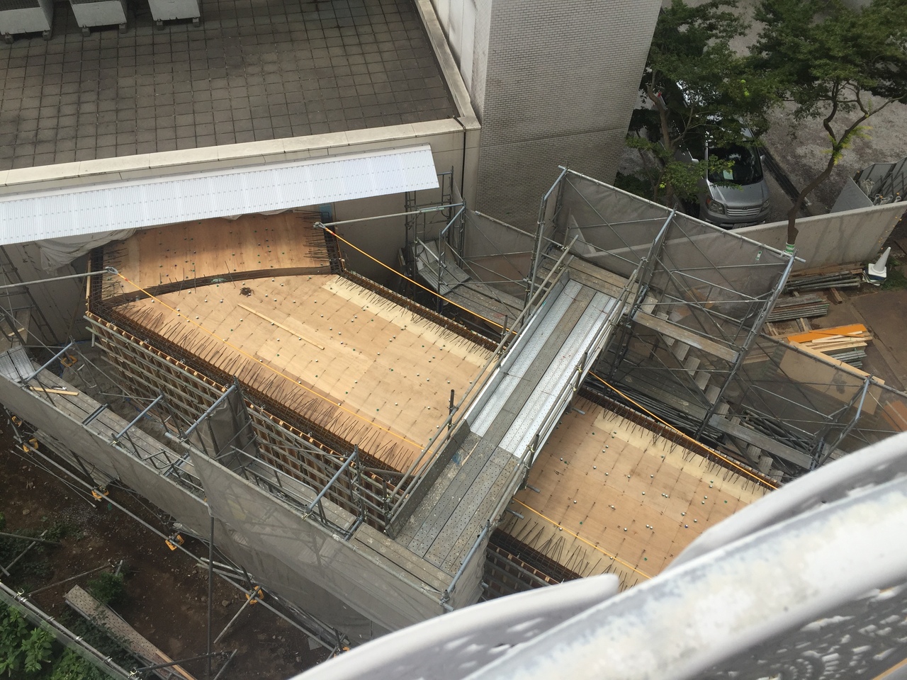 何と真下の外通路をバリバリ ドンドンと工事中。