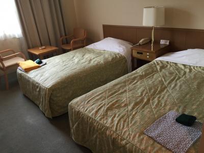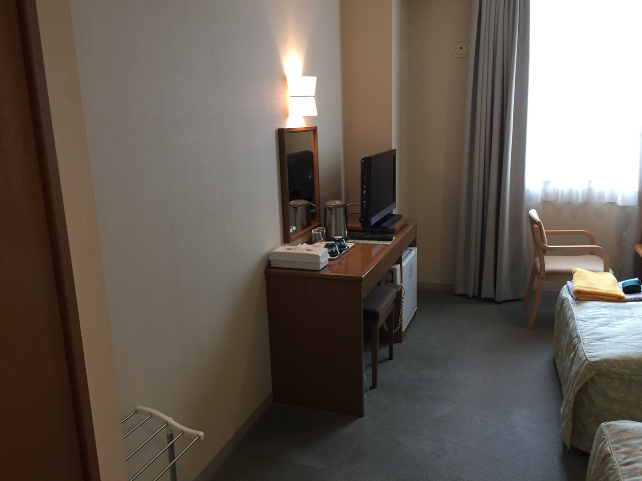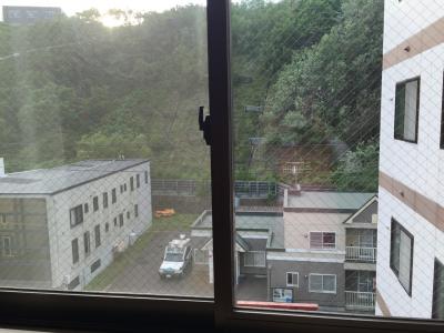 お一人様は狭めツイン 山側のシングル使用。眺め超悪し。