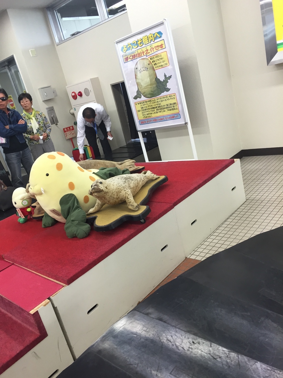 0840発 稚内行きに乗車したが 乗車口で 礼文島のゆるキャラ アツモンがお見送りしてくれた。
