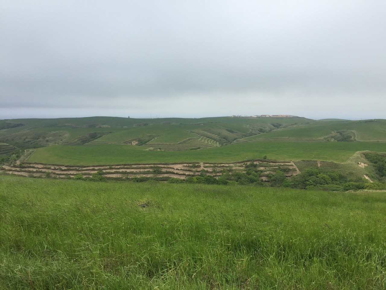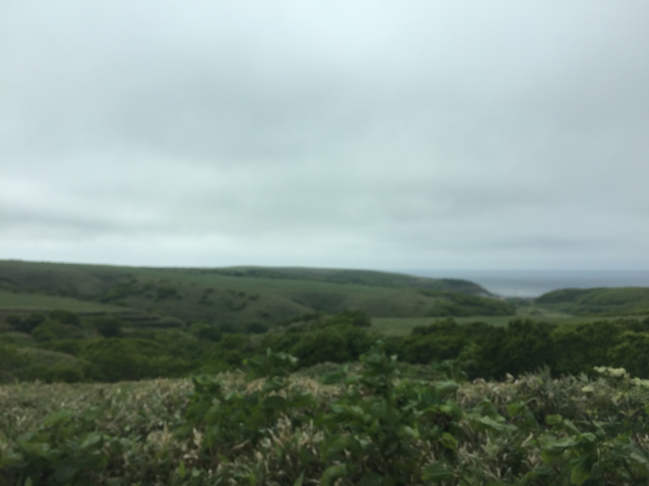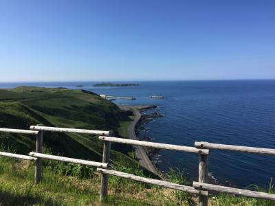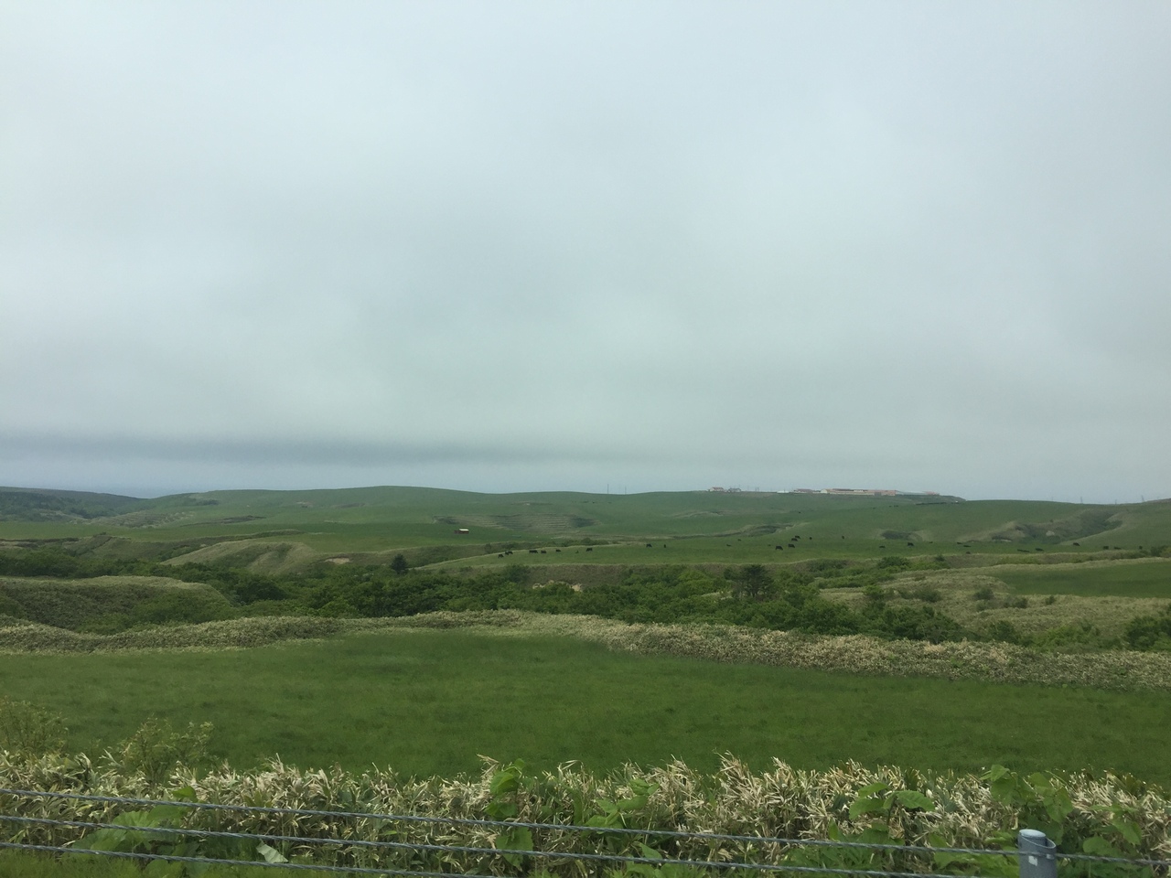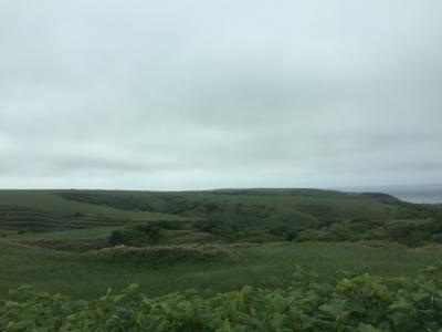 宗谷岬の背後に広がる 北海道らしい広大な丘陵。