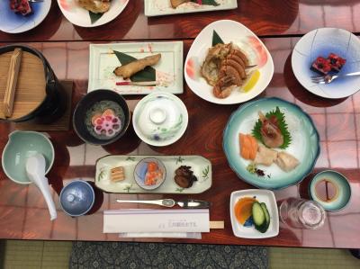 夕食 朝食会場からも 利尻富士が真正面に美しく見えた。