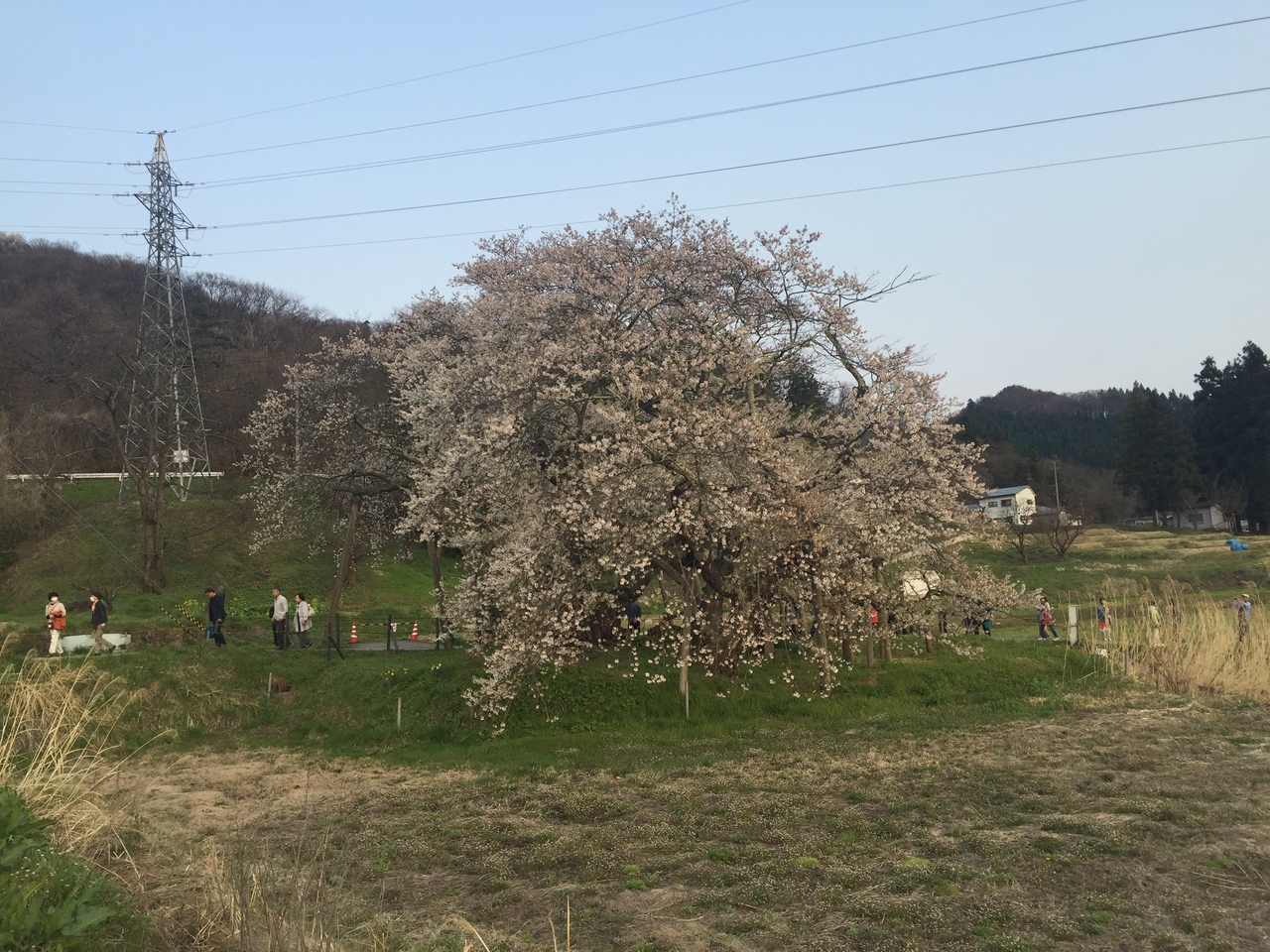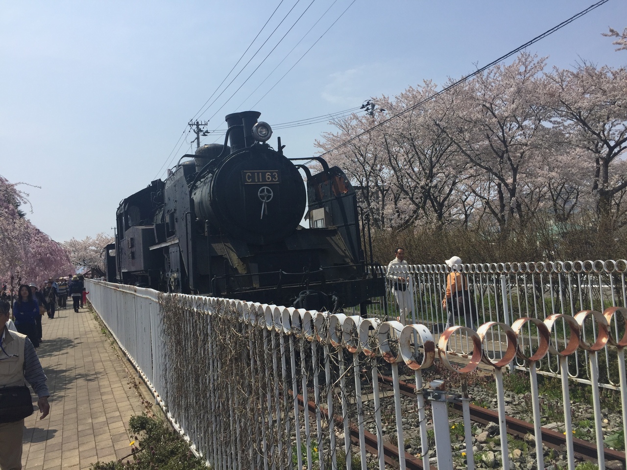 場内の公園では地元の人達が花見宴会で賑やか。