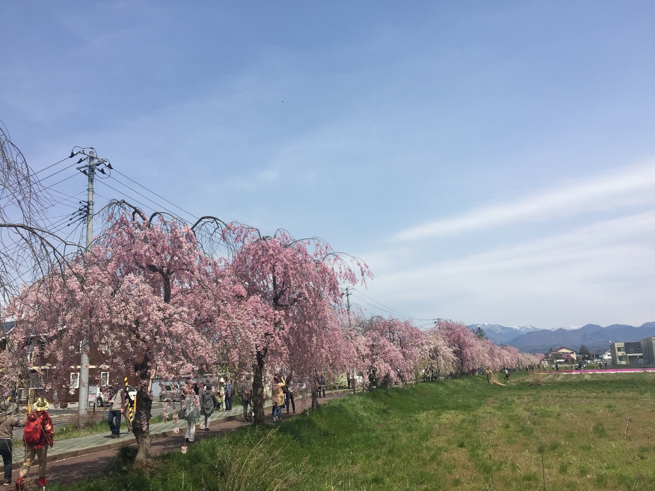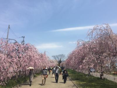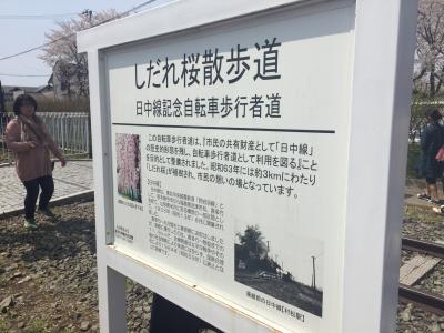廃線になった線路跡が歩行者自転車道になっていて その両側に地元の人達が枝垂桜を植えて約30年。
