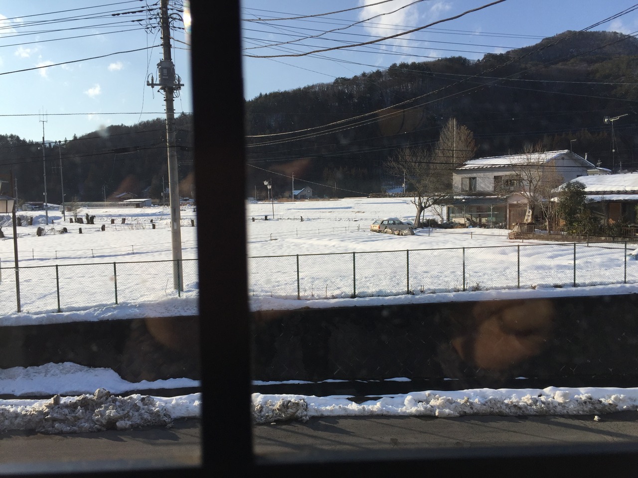 部屋に案内され 窓から見える景色は 雪景色の畑と群馬の普通の民家が数軒 大ショック。。