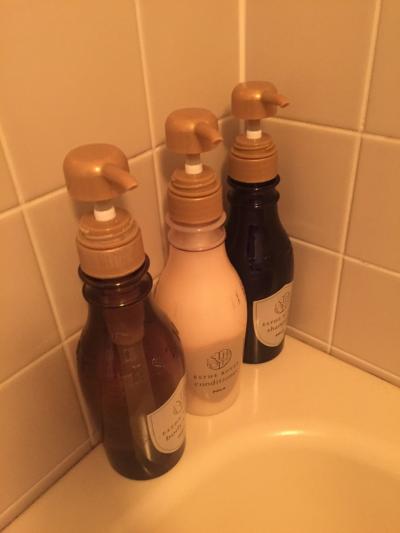 アメニティも お風呂籠が上層階は天然素材、下層階はプラスチック。