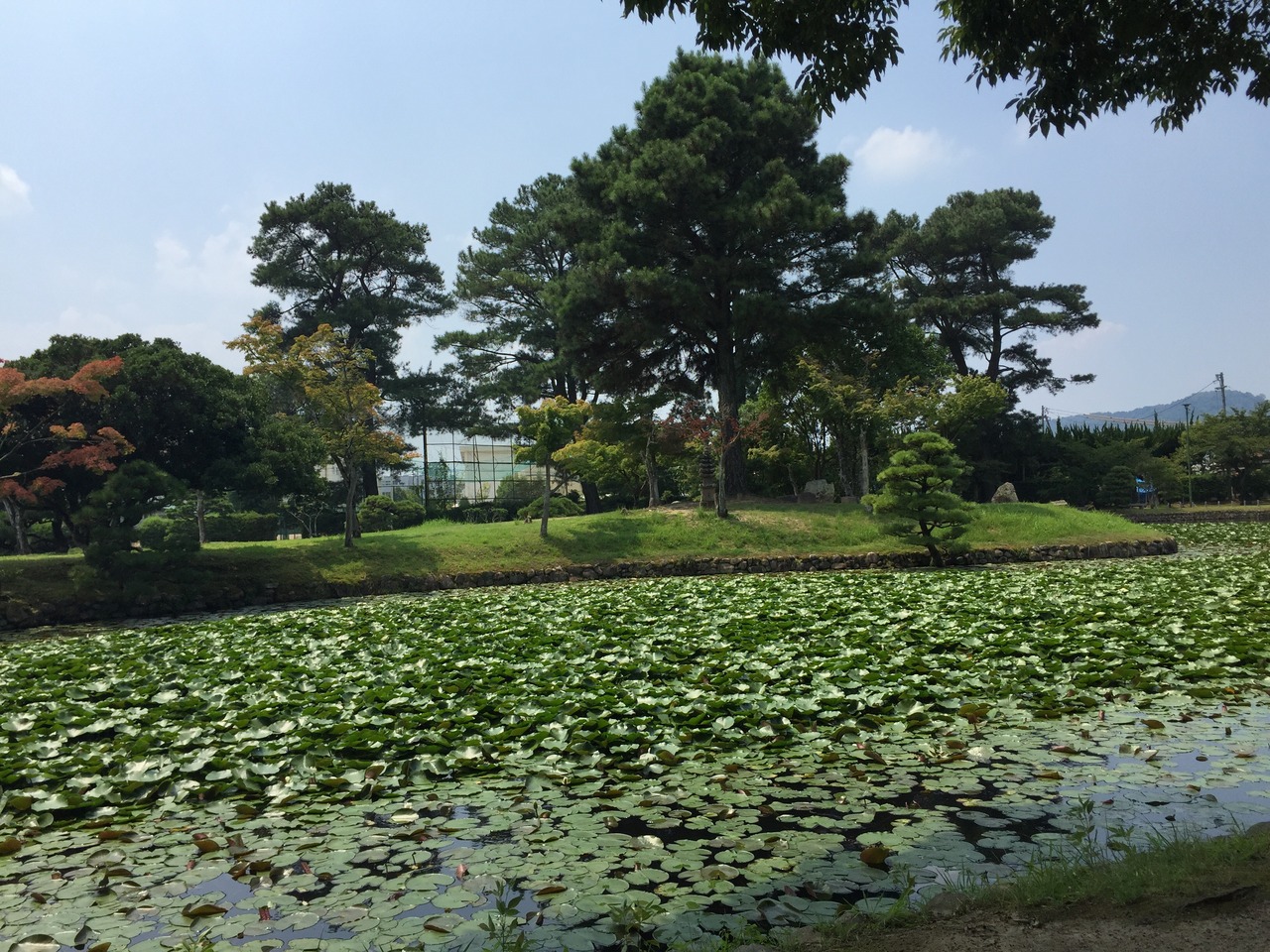 池が大きくかなりの面積を占めるが 一面に白い蓮が広がっていた。