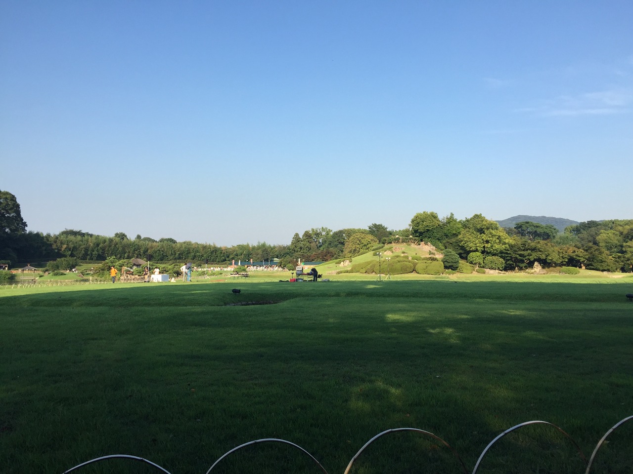 広大な敷地 芝生が良く手入れされていて 芝生に寝転がり空を見上げてノンビリ。