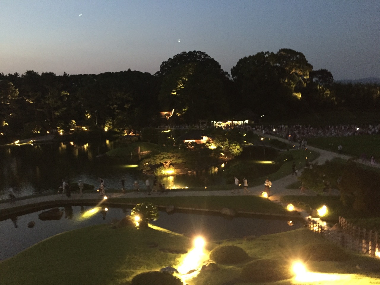 8月は後楽園と併せてライトアップ 夜間入場を行っている。