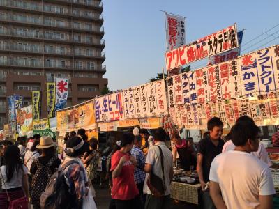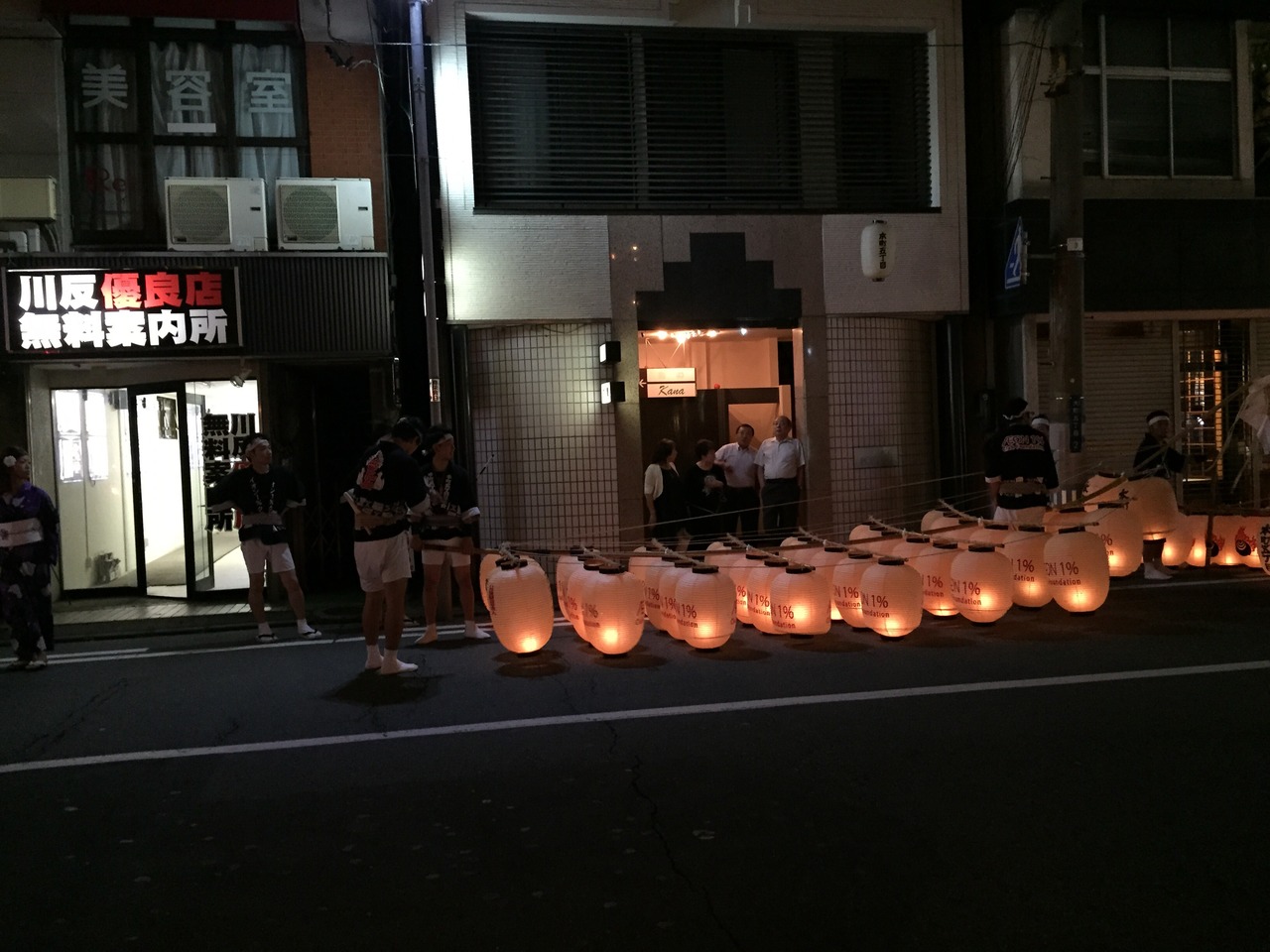 岡山市のお祭りの日に当たり 地元民が続々とクーラーボックス レジャーシート持参で集結。