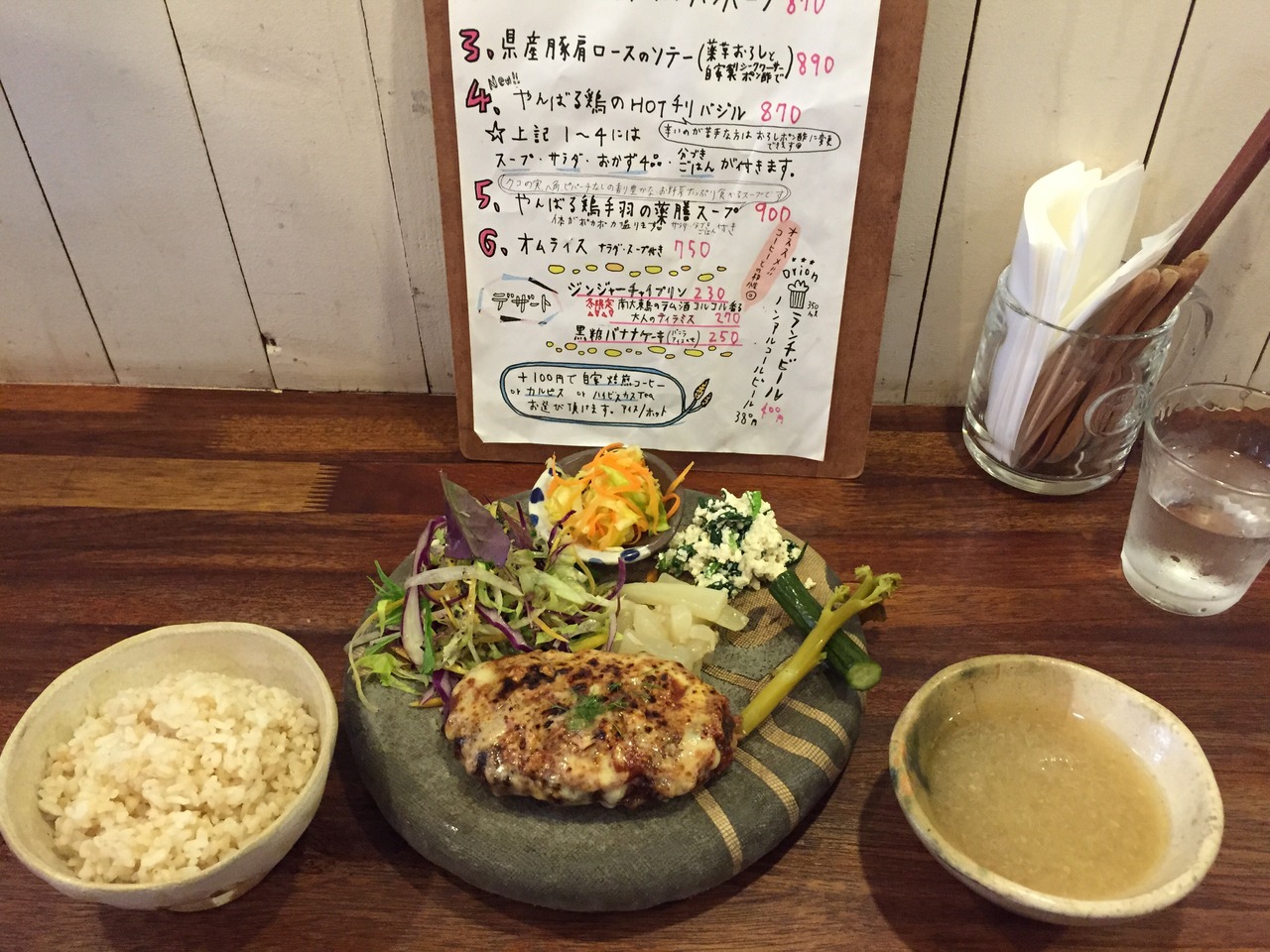 店はカフェ風 メニューも一見するとカフェ飯だが 出てきた料理はしっかりの定食。