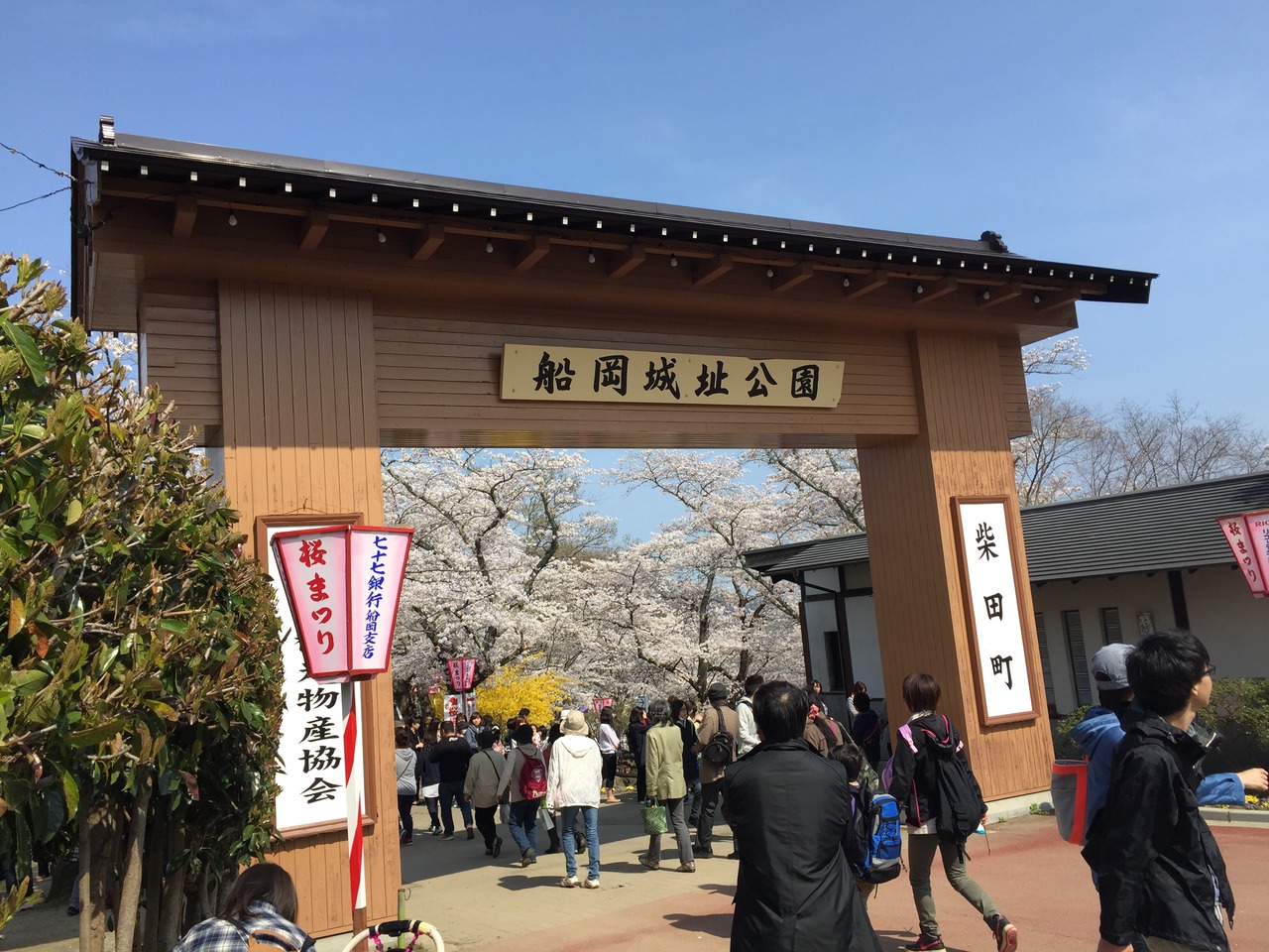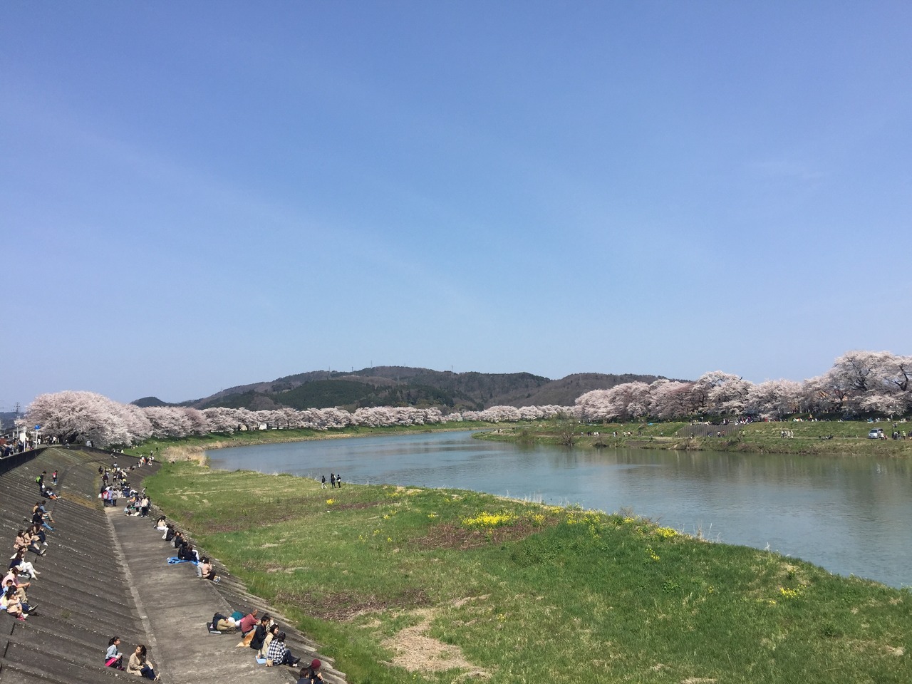 大河原駅近くは レジャーシートで楽しむ家族が多いが 船岡駅近くはそんなことはない。