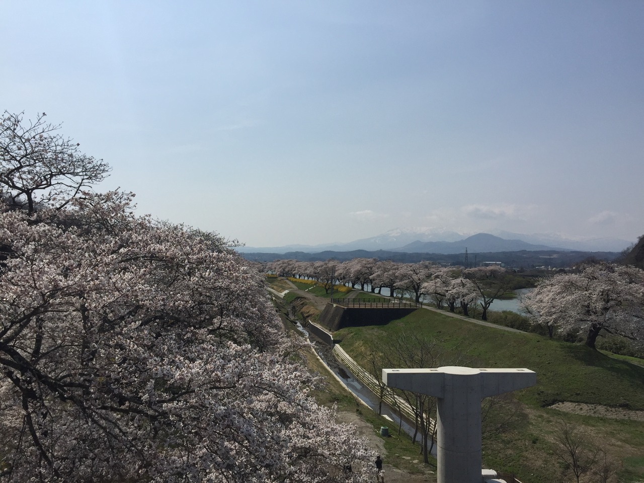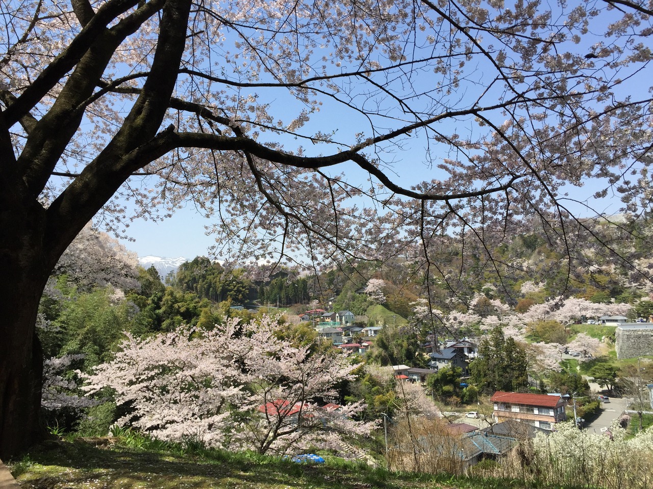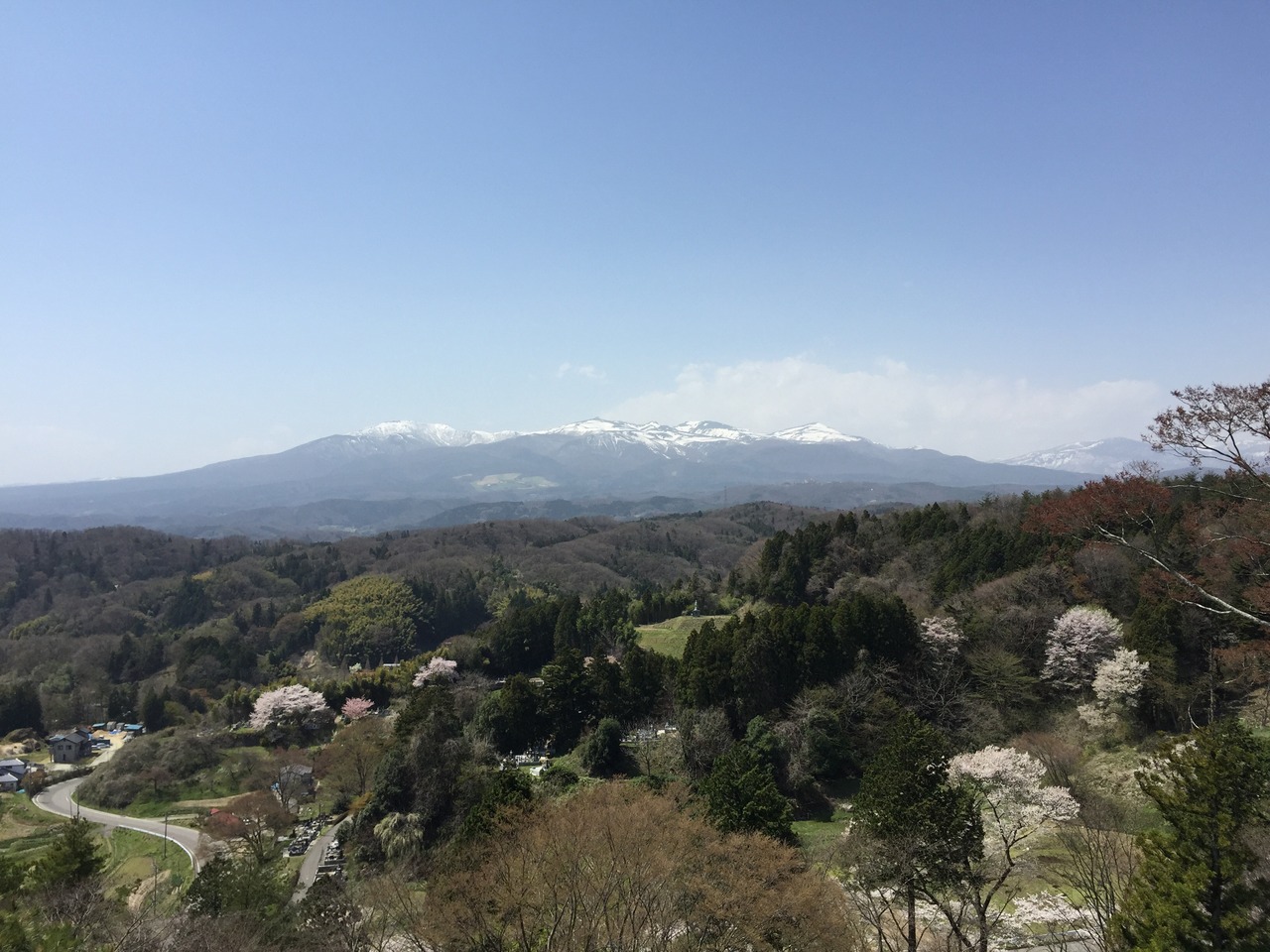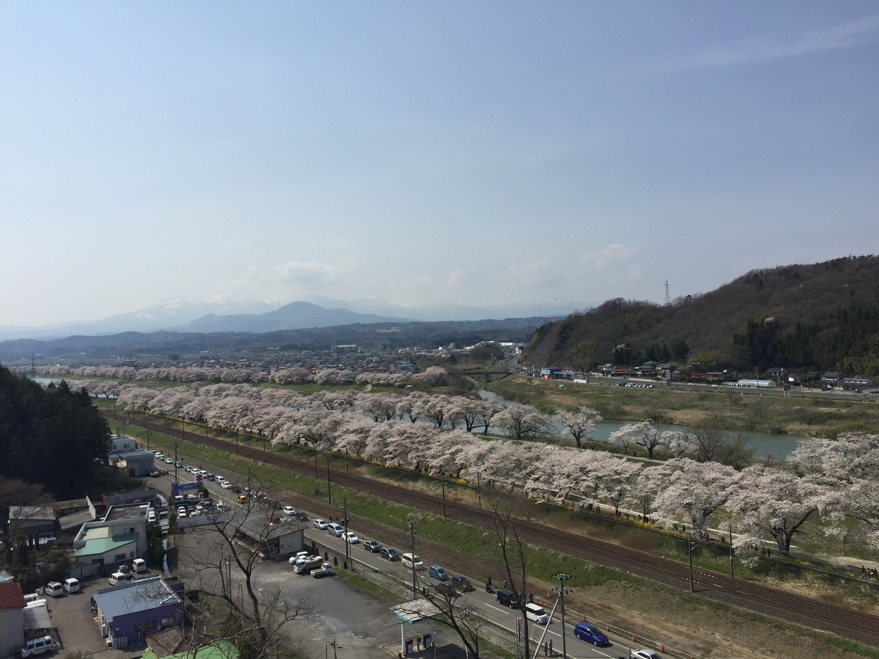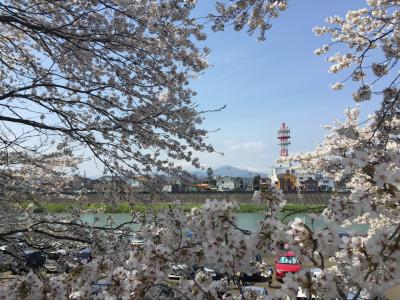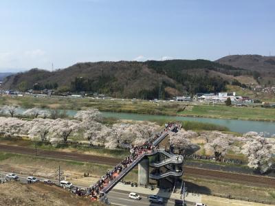 満開の晴れの日曜日 素晴らしい桜と蔵王連峰の素晴らしい景観を堪能!