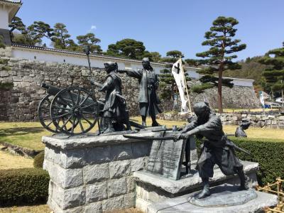 二本松城 霞ヶ城公園に行くと すぐに目立つ所に二本松少年隊の像がある。