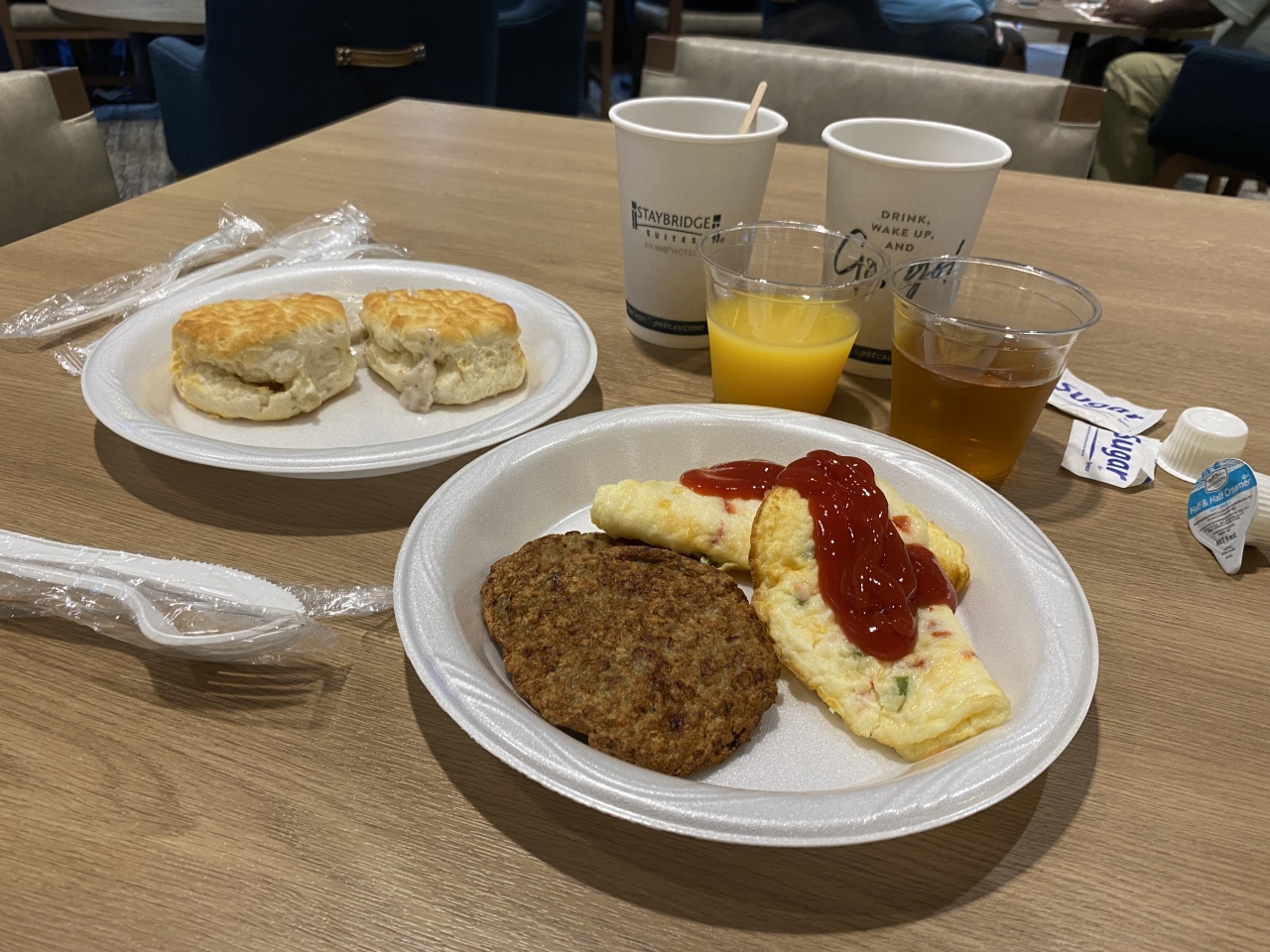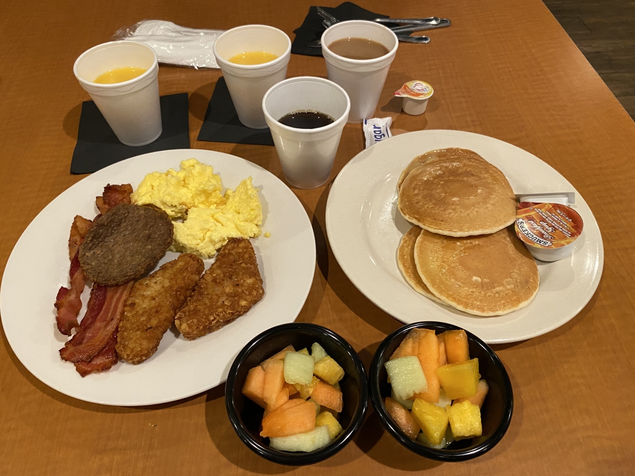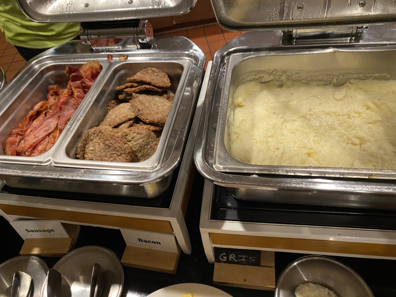 空港が近い郊外なので町の中心よりは安価、朝食はホリデイ・インの定番ビュッフェだけどちょっとイイ