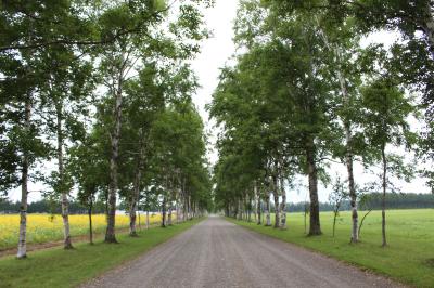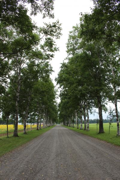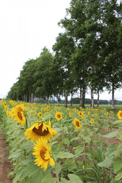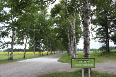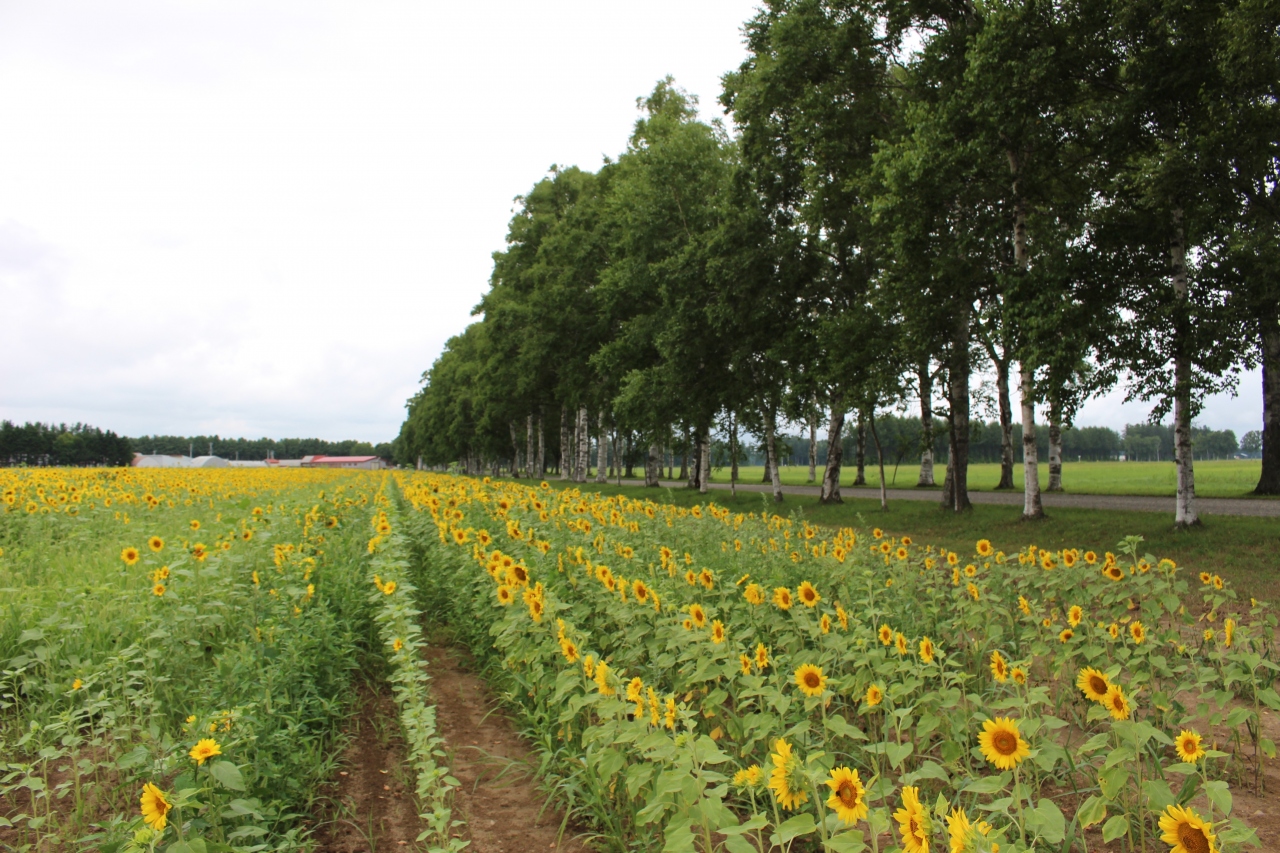 約70年前に牧場職員の手で植樹された白樺並木、隣のひまわり畑も良いです