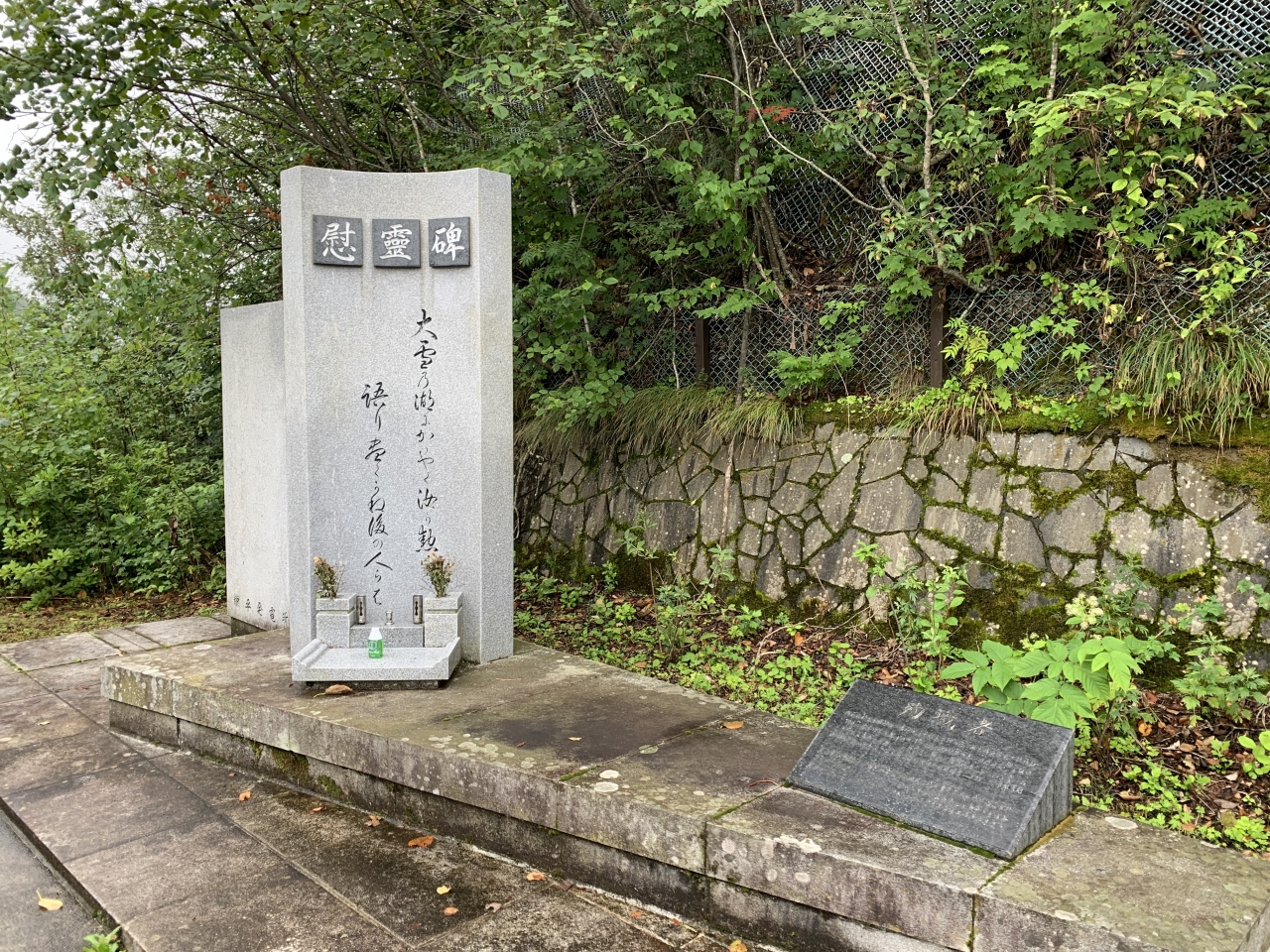 昭和31年(1956年)に完成した、発電専用のコンクリートダムが形成したダム湖です。ダムの傍には、ダム建設で犠牲になった方々の慰霊碑。32名もの殉職者の名と出身地が刻まれています。インフラの開発や工事…我々の現在の生活の便利さの陰には、犠牲となった多くの方がいることを忘れてはなりませんね。”ぬかびら”とはアイヌ語で”人の形をした岩”という意味らしいです。音更川の沿岸にあったというその岩は、今は湖底に沈んでいるとのこと。アイヌの方々が畏れていたかもしれないその岩が今も糠平を見守っているような気がします。