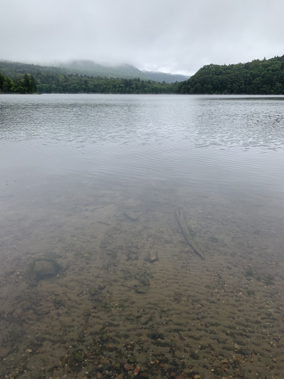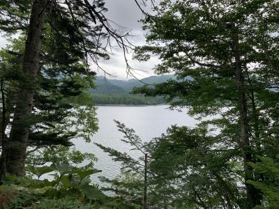 足寄町の東端にある湖オンネトー、西岸の展望デッキに立ち寄りました。アイヌ語で「老いた・大きな沼」という意味を持つというオンネトー。晴れていれば湖ごしに雌阿寒岳と阿寒富士の両方を見られるそうなのですが、残念ながらこの日は天気が悪かったので見られず。季節や天候、視点によって湖面の色がライト/ダークブルー、エメラルドグリーン等に変わることから「五色沼」とも呼ばれるオンネトーですが、この日は…ダークグリーン?(普通の湖の色) 景色はイマイチですが、奥日光の湯ノ湖のように静かで神秘的ではありました。