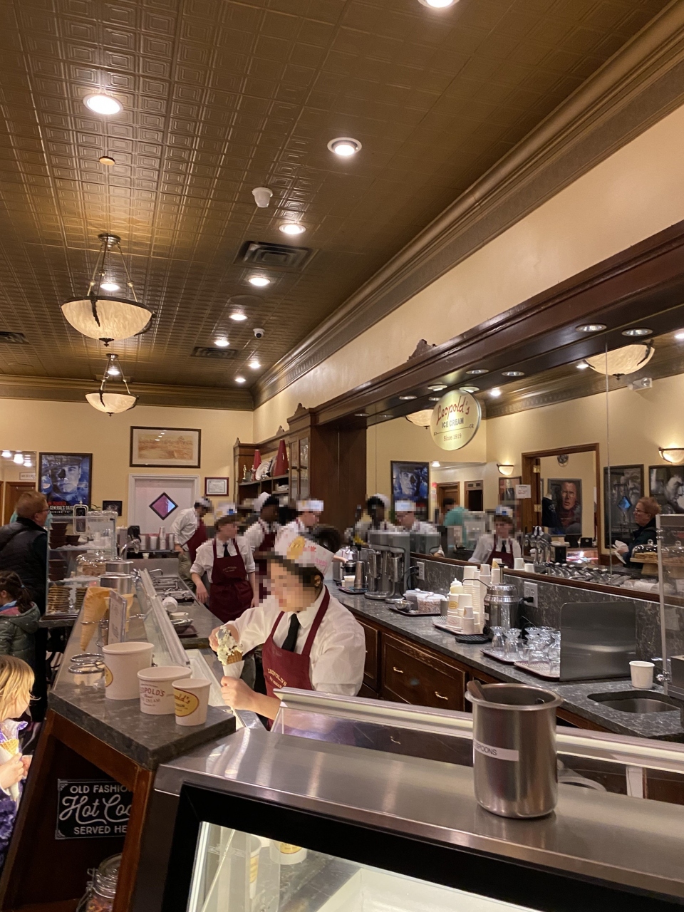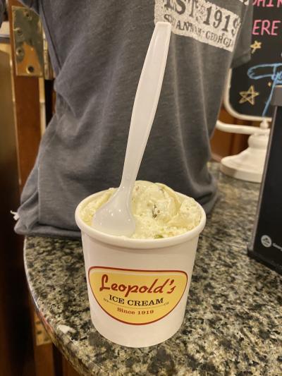 イースト・ブロートン通り沿いの「レオポルド・アイスクリーム」には、昼も夜も行列が出来ていました。近くのシーフードレストランでディナーを取った後に並んでみました。昼よりも夜の方が行列は短く20分ほど並んで入店。レオポルド・アイスクリームは、1919年にギリシャ出身の兄弟が創業した歴史あるアイスクリームで、100年以上に渡りサヴァンナの人々に愛されてきました。特別に美味いというわけではないですが、これが昔ながらのシンプルな味わいなのでしょう。