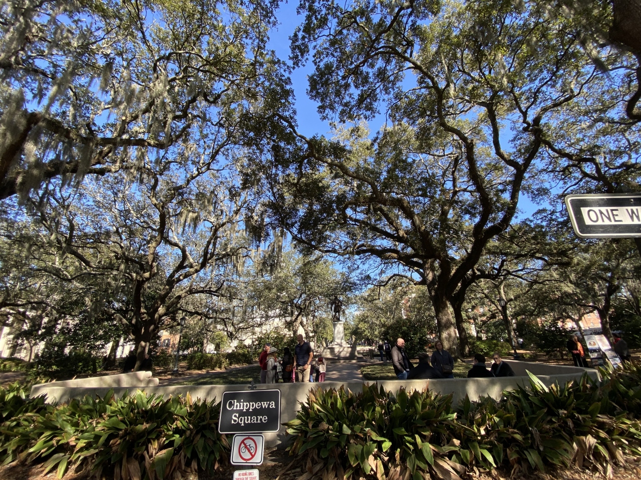 チッペワ・スクエアのすぐ近くにあるのが「長老派教会(インディペンデント・プレスバイテリアン教会)」。1755年に設立されるも1796年に火災で焼失、1800年にロンドンのセント・マーチン・イン・ザ・フィールズ教会をモデルに建て直されるも1889年にまたも焼失、そして1891年に再建されました。映画フォレストガンプのオープニングで、白い羽が風に乗って飛んでいるシーンでバックにあったのがこの白亜の教会でした。
