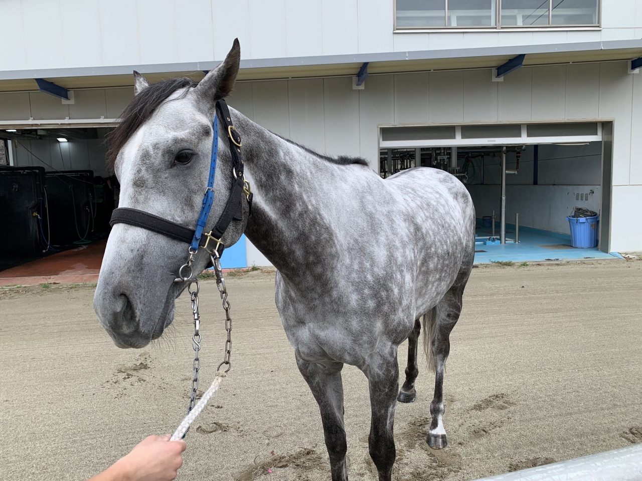 現在は「競走馬リハビリテーションセンター」に改称されています。現役競走馬のリハビリテーションを専門とする日本で唯一の施設として、1963年に開設されたそうです。競走馬は脚を痛めることが多く、温泉で療養します。そのためにいわきにあるんですね。ウォータートレッドミルは水の浮力で足への負担を減らしてリハビリする施設です。係員さんが患者さん(現役競走馬)を連れて来てくれ、真近で触れさせてもらえました。