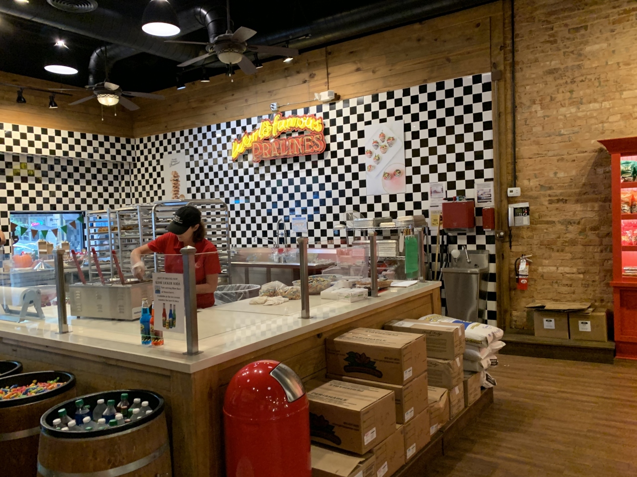 ジョージア州サバンナ生まれのキャンディおよびスイーツブランドです。1973年にサバンナに旗艦店がオープンし、プラリネ、ロガーヘッド、アイスクリームとジェラート、アソートチョコレート、フレーバーポップコーンなど、様々なスイーツで知られる南部では有名なブランドの様です。暑い日でしたのでジェラートをいただきました。とにかく広い店内にスイーツが盛り沢山なので、見ているだけでも楽しめます。(いや、女子にとっては見てるだけなんて酷?)