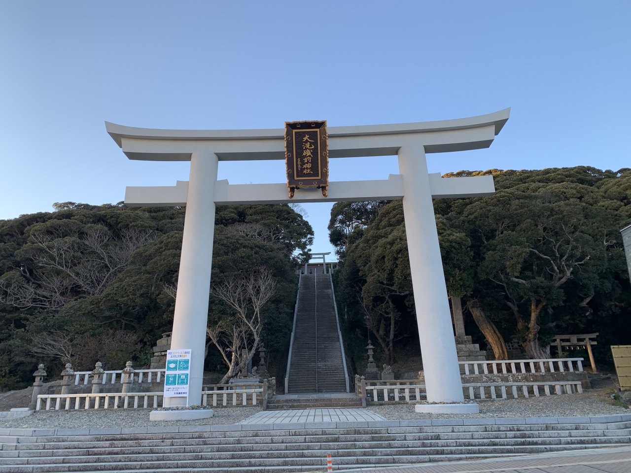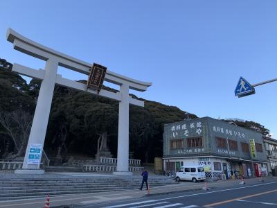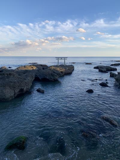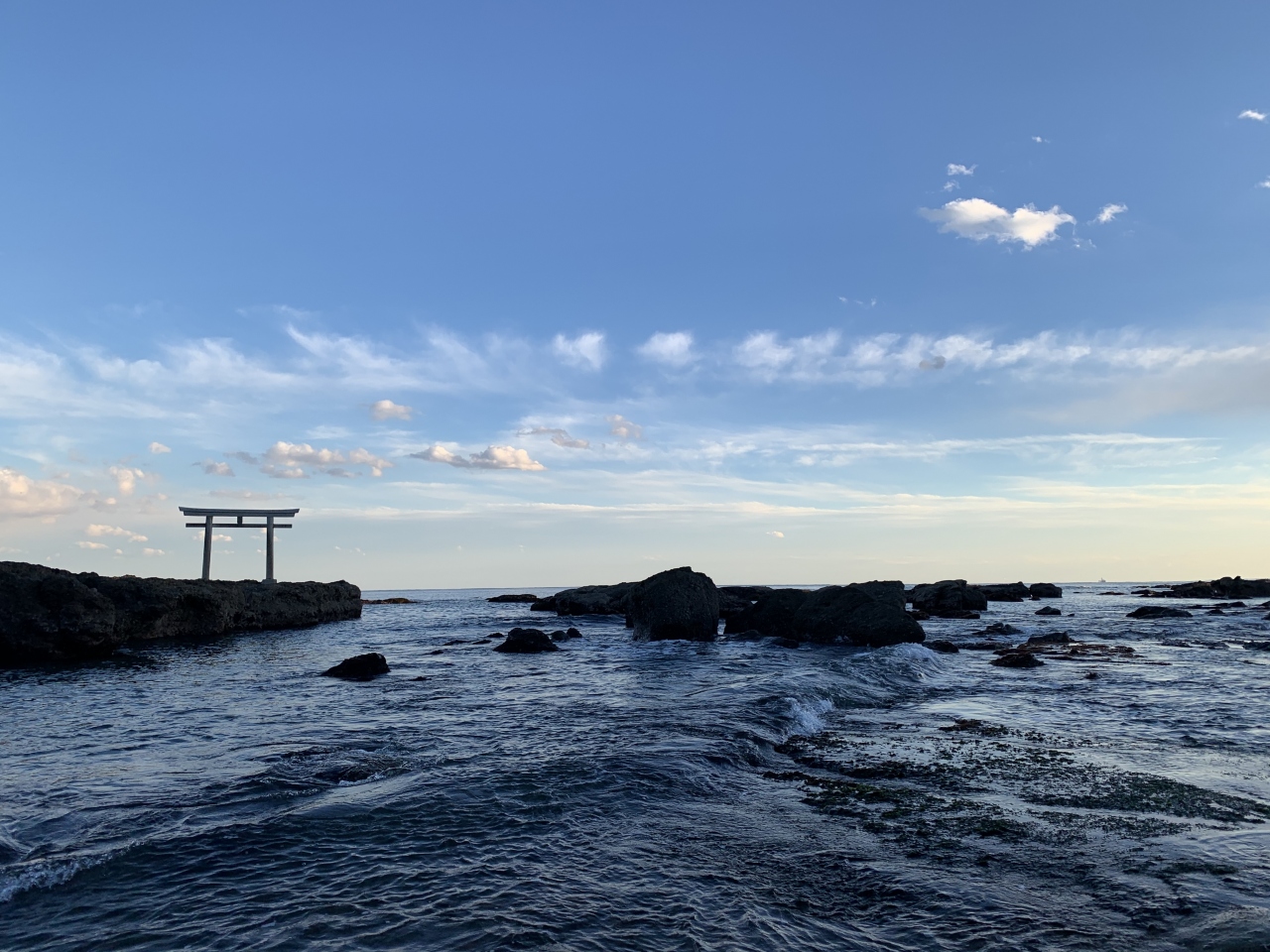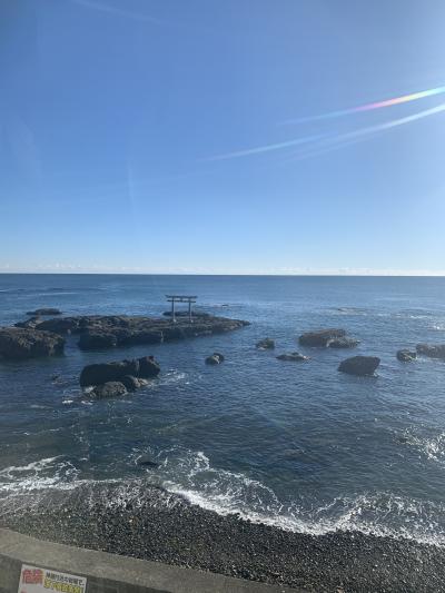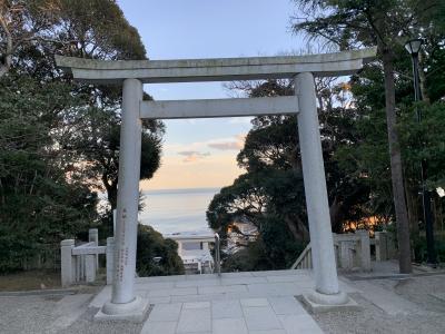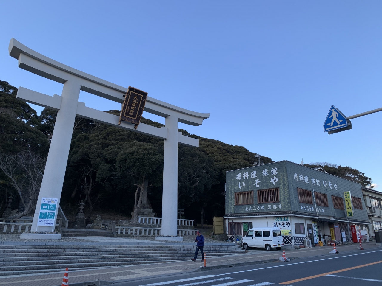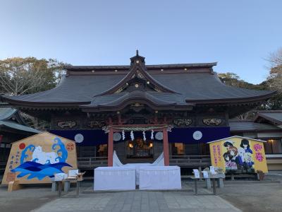 「おおあらいいそざき」と読みます。平安時代の書物に由緒が載っているとのこと。祭神は大己貴命・少彦名命。年越の大祓式・茅輪くぐり神事で用いられたらしき茅の輪が残っていました。拝殿前にはガルパンのボード。大洗とガルパンはアニメの聖地での町おこしの成功例とされていますね。でも、この事例では誰かがリードした町おこしではなく、地域と製作側の連携で皆で盛り上がったものらしい。下手に狙っていなかったのが良かったのかもしれませんね。第二の鳥居からは眼下に大洗の海が見渡せます。