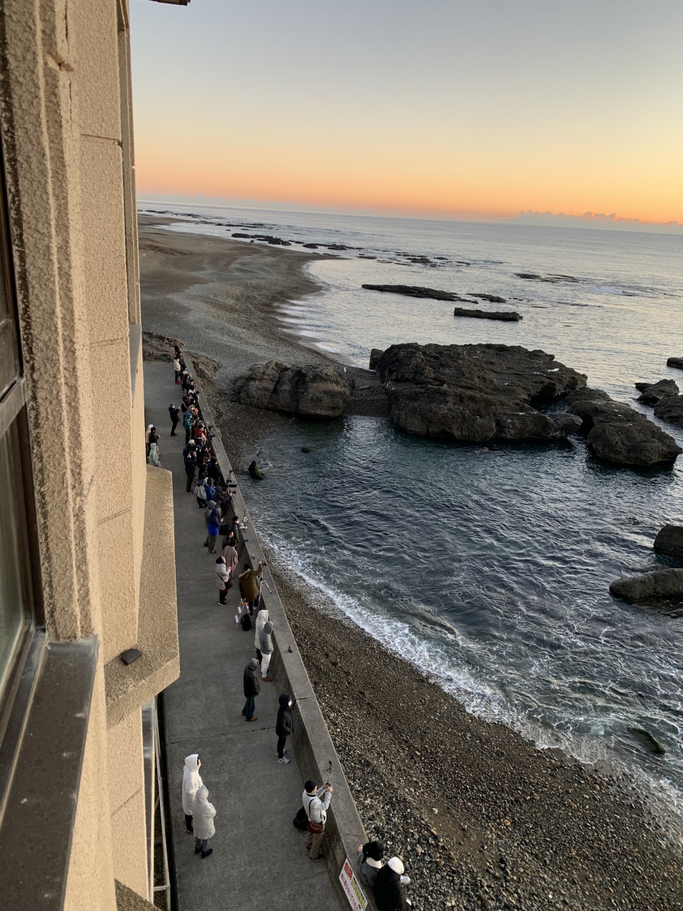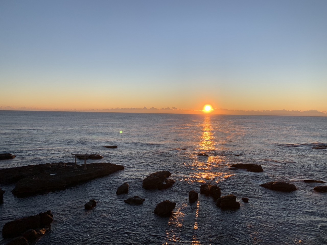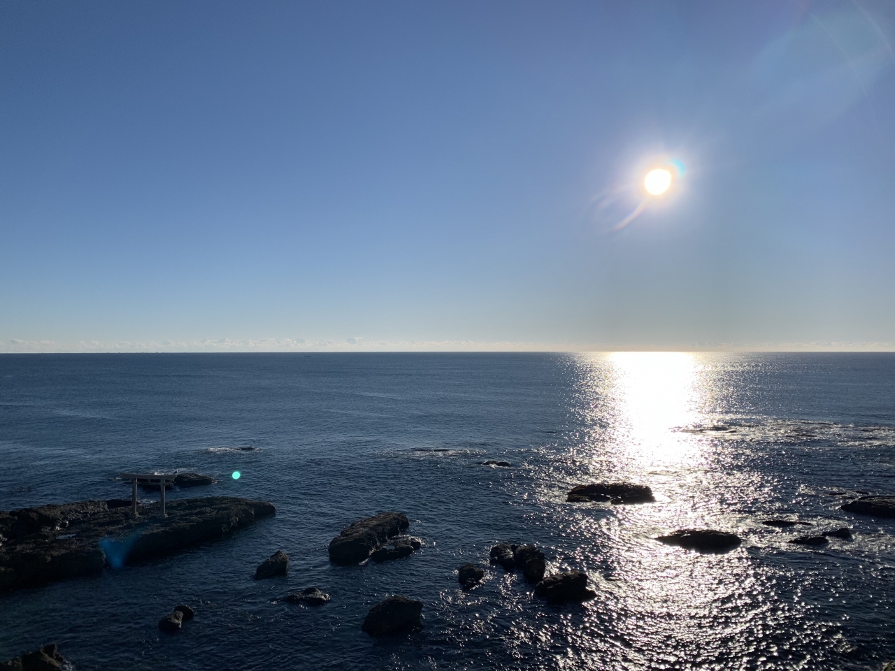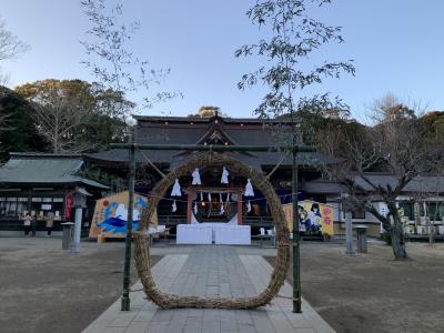「おおあらいいそざき」と読みます。平安時代の書物に由緒が載っているとのこと。祭神は大己貴命・少彦名命。年越の大祓式・茅輪くぐり神事で用いられたらしき茅の輪が残っていました。拝殿前にはガルパンのボード。大洗とガルパンはアニメの聖地での町おこしの成功例とされていますね。でも、この事例では誰かがリードした町おこしではなく、地域と製作側の連携で皆で盛り上がったものらしい。下手に狙っていなかったのが良かったのかもしれませんね。第二の鳥居からは眼下に大洗の海が見渡せます。