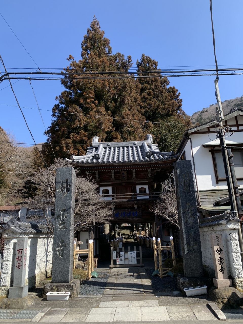 塩原温泉街の真ん中にある市指定有形文化財のお寺です。創立は寿永3年(1184年)、落雷のため焼失ののち元文5年(1740年)に再建されたとのこと。本堂の裏手には、小さな滝と”ぼたん苑”へのゲート。毎年5月には”ぼたんまつり”が催されるそうです(コロナ禍では中止)。寺の裏手には”文学の森”があり、平家塚があります。平安時代末期に宇都宮氏を頼って上塩原に落ちのびてきた、平重盛のおばである妙雲禅尼と平貞能(さだよし)一行が草庵を立てたのが妙雲寺の開基とのこと。さらに上がると山の上に”百観音”がある様なのですがそこまでは行かず。塩原十一湯の一つの門前温泉は、この妙雲寺の門前町として発展したということですが、それだけの歴史を感じられる寺でした。