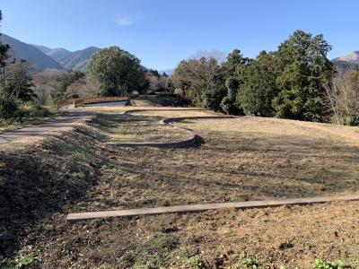 山北駅から1km足らずの場所にあります。「河村城址公園」として城跡が整備されています。河村城は、平安時代末期に秀郷流藤原氏の一族であった波多野遠義の子、秀高が現在の山北の地を領し、河村を名乗ったことに始まるそうです。現在遺っているのは、戦国時代に河村城が北条氏の城だった頃のものらしい。平成元年(1989年)から6年の歳月をかけて河村城跡の調査研究と歴史公園としての整備が行われ、平成6年5月に「河村城址歴史公園」が誕生したとのこと。その後、平成8年に、県内の山城としては初めて県指定史跡となりました。展望デッキもあって見晴らしは良く、ちょっとしたハイキングにもよさそうです。