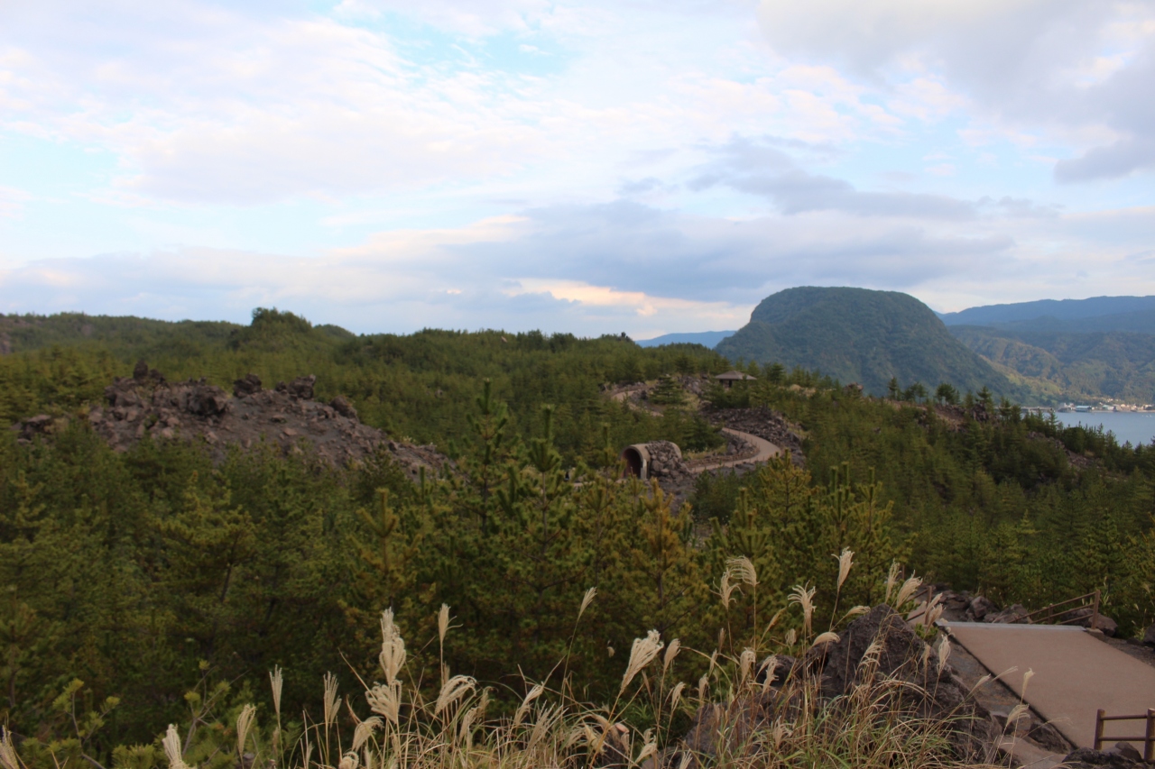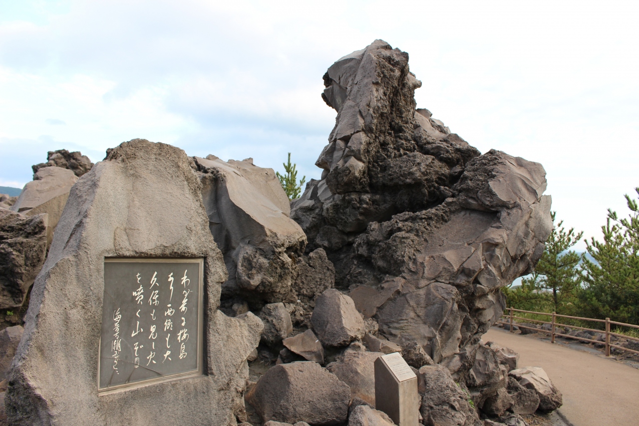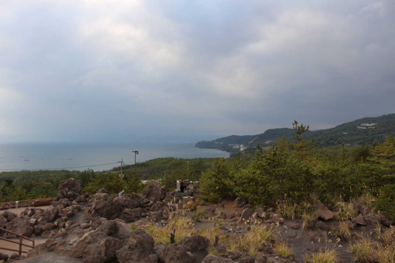 桜島フェリーのターミナルです。ターミナルの前には、昭和4年(1929年)から19年間村長を務めた久米芳季(よしすえ)氏を称える碑。氏は”西桜島地区で私財を投じ村の発展に尽力した”とたたえられており、桜島フェリーの産みの親とも。江戸時代末期の「薩英戦争砲台跡」などもあったりします。ターミナル内には「ミナトカフェ」という雰囲気が良いカフェがありましたのでここで休憩。また、桜島フェリーターミナル内の窓口で、あらかじめ予約しておいた鹿児島市交通局の観光バス「定期観光バス・桜島自然遊覧コース」のチケットをゲットしました。