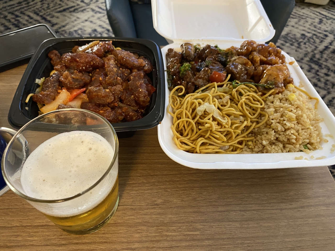 ホテルのすぐ近くにありましたので晩ごはんを調達。パンダ・エキスプレスはロサンゼルス発祥の中華系ファストフードです。1プレートと1パンダボウルをテイクアウト(二人分です)しました。プレートは定番のオレンジチキンをチョイス。計19ドル(約2,600円)でした。日本の町中華ほど美味くはないですが、アメリカで手軽に手早く食事を済ますなら便利です。