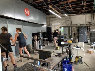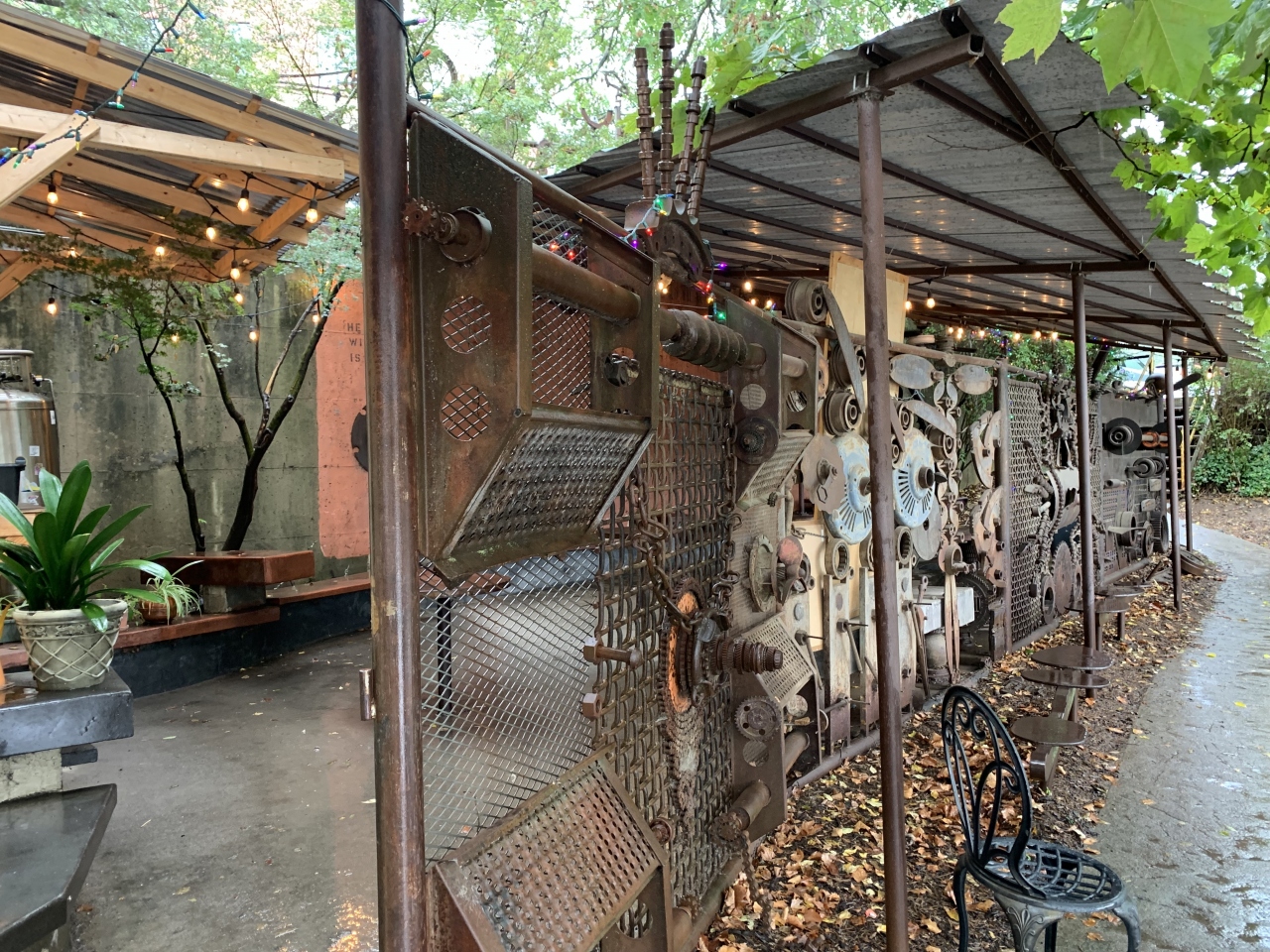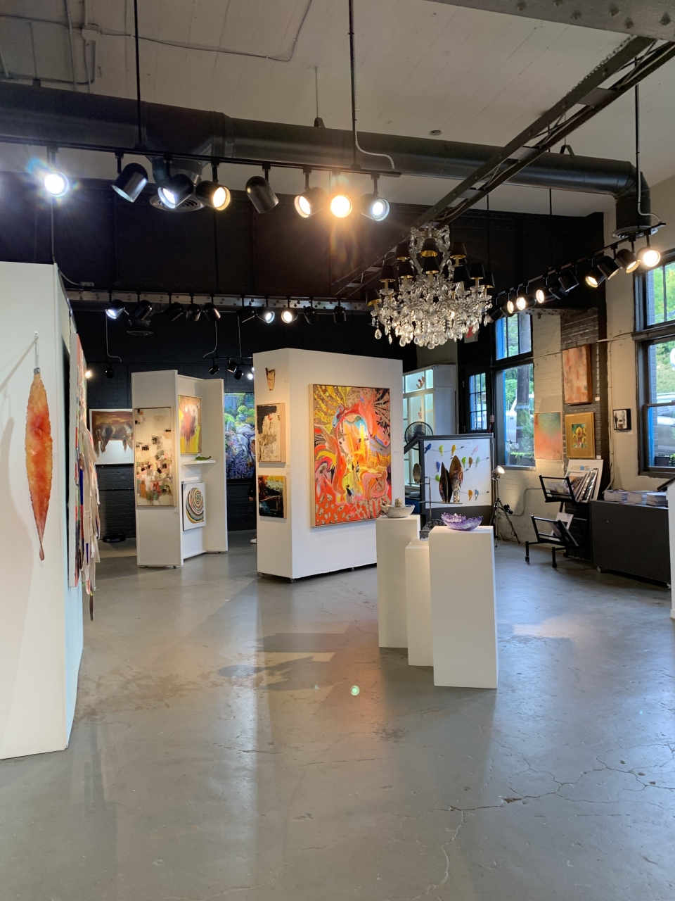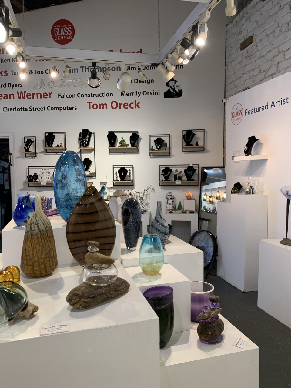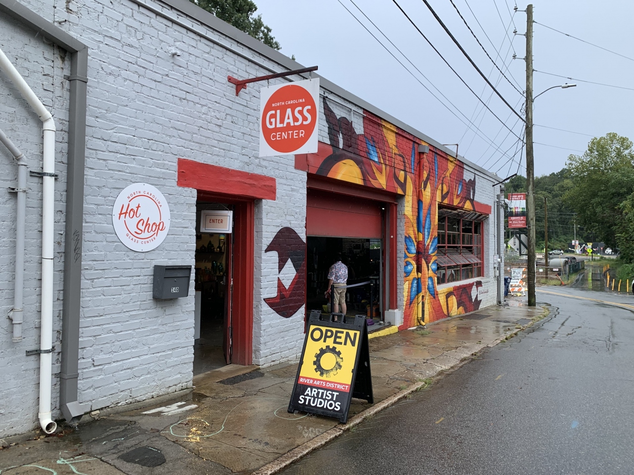 アッシュビルのダウンタウンから南西方向の郊外のフレンチ・ブロード川沿いに、アートの工房やギャラリーが並ぶ地区です。かつて倉庫や工場だった場所が工房やアートギャラリーになっています。かなり多くのアートハウスがあって紹介しきれませんが、カフェバー、BBQレストラン、ブリューワーなどもあり、音楽も流れ天気が良ければ賑やかそうなスポットです。(訪れた日はあいにくの雨でしたが)
