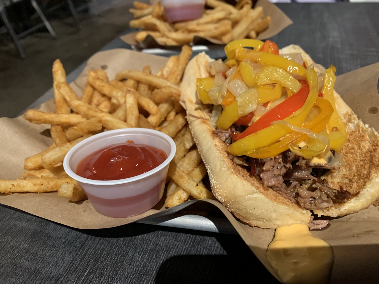 グリーンビル市街中心部のメインストリート沿いにあるアメリカ料理・バーベキューレストランです。私は「プルド・ポーク・サンドウィッチ」、ノースカロライナ州の名物プルド・ポーク(BBQ=バーベキューした豚肉をほぐしたもの)をサンドした一品をオーダー。妻は「ブリスケット・フィリー」、アメリカンBBQのド定番、ブリスケット(牛の肩バラ)を挟んだドッグをオーダー。お好みのBBQソースでいただきます。う~ん、香ばしくジューシーな肉と濃い味のソースが相まってパワフルなテイスト。アメリカ南部といえばやはりBBQ(バーベキュー)レストランはで外せません。