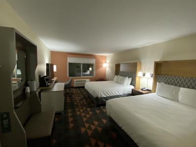 アシュビル観光の拠点として2泊しました。キャンドルウッド・スイーツはIHG系列のホテルです。いつもはホリデイ・インばかりなので、たまには違うホテルにしてみました。客室の雰囲気は、ホリデイ・インよりちょっと格上な感じです。バスルーム、アメニティもホリデイ・インよりちょっといいです。フィットネスジムやコインランドリーも完備です。アシュビル郊外ですが、周囲にはファストフードやレストランが充実してます。