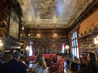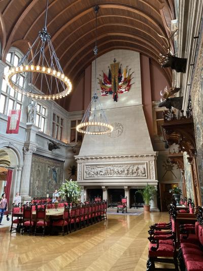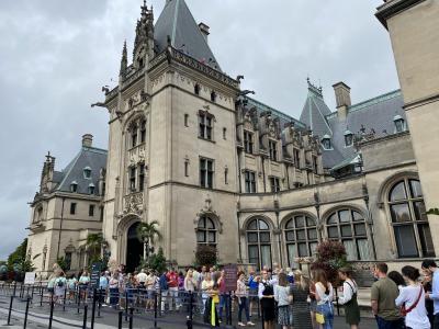 アシュビルの中心からおよそ2マイル南に位置します。東京ドーム約700個分という広大な面積を持つ、「ビルトモア・エステート」という全米最大の個人邸宅の中の住居棟が「ビルトモアハウス」です。1880年代、アメリカは南北戦争後に急速に資本主義が発展し、「金箔時代」と呼ばれる超バブリーな時代に突入しました。そんな時代に建てられた豪邸です。高額な入場料(税込み127ドル)にも拘らず行列でした(アメリカ人の給料ならそんなに高額でもないのかな)。とはいっても、入場料には植物園なども含めたエステート内全ての入場とワインテイスティングも含まれています。入場チケットは事前にWebで購入しました(15分毎に入場時間が決められており、時間帯を選んで買います)。内部も豪華で、20世紀を迎えようという近代に、17世紀の王国時代のヴェルサイユ宮殿の様に贅を尽くした個人の邸宅があったことに驚きます。また、欧州のそういった宮殿に比べると見応えに対して料金が高いですが、観光名所として国や自治体の補助金などは無く個人で収益を出さなければならないので高くなってしまうそうです。ハウス、植物園、ワインテイスティングだけでサクサク回って最低半日、できれば全体を回るのに1日欲しいところです。