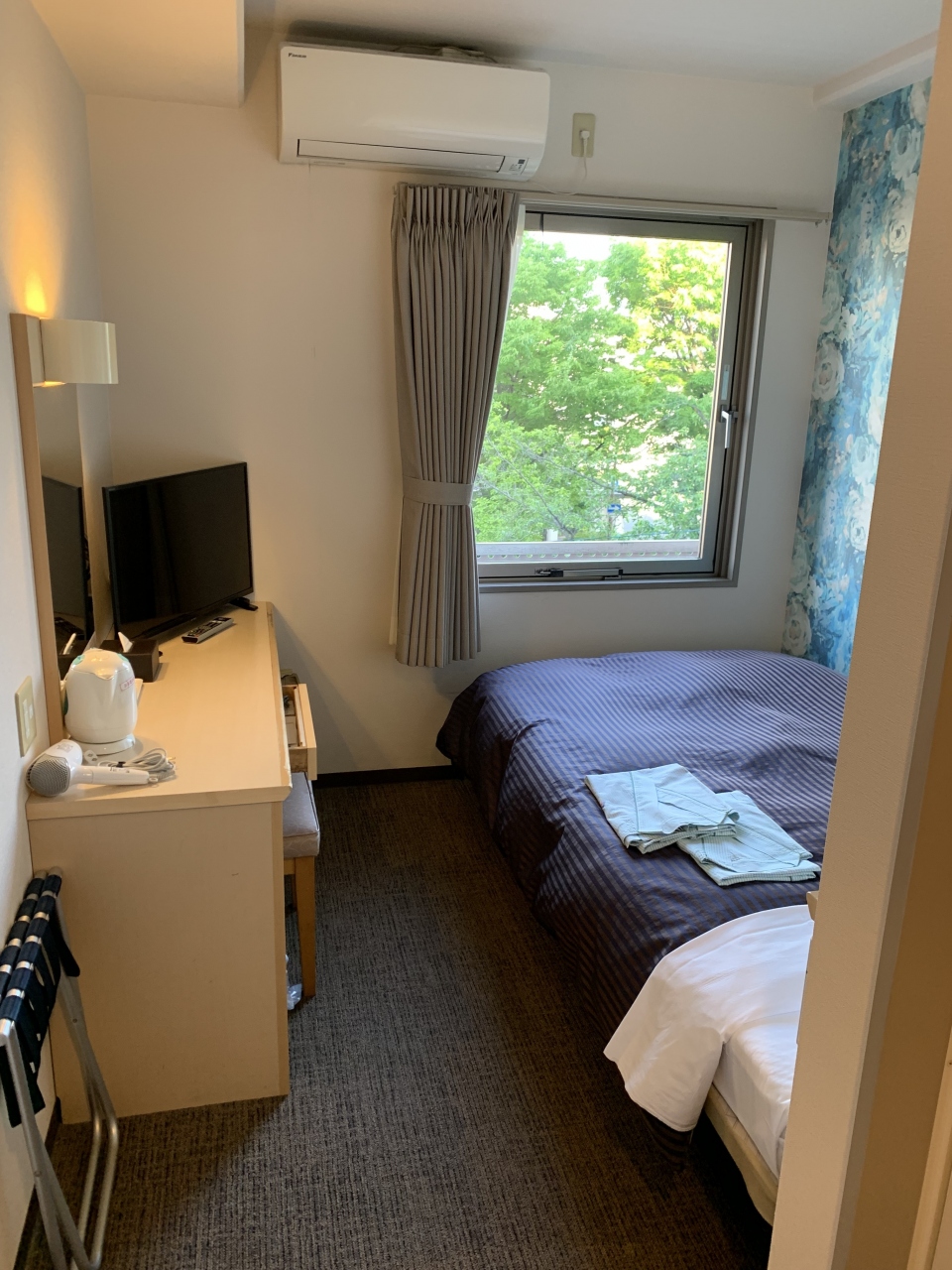 JR岡山駅から南東へ1kmほどの場所にあるビジネスホテルです。駅から少し離れているので安価なのと(レンタカーでしたので駅から遠いのは問題なしでした)、全客室でワイド&ロングベッドを導入しており、賑やかなエリアからは離れているものの目当ての飲食店にも近かったので選びました。設備やスタッフのサービスも申し分なく、無料の朝食(弁当)も付いていてCPが良いと感じました。おススメできるホテルです。