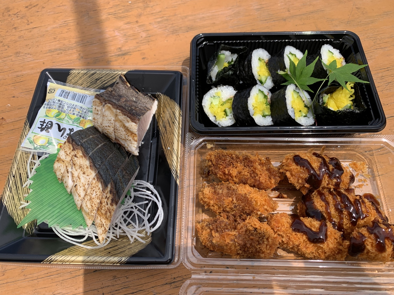 日生町漁協の魚市場です。ゴールデンウィーク中のお昼時に訪れましたが、covidの影響なのかまだまだ人は少なめ、こぢんまりと季節の新鮮な魚介が並んでいました。牡蠣は季節外れながらもやはりここは日生なのでカキフライ(600円)と、岡山といえば今(訪れたのは5月)が旬の鰆も外せないのでタタキで、そして巻き寿司を買って軽くランチとしました。鰆はかなり肉厚でずっしり重量感がありながらも800円とお手頃、身が引き締まりつつ柔らかく臭みもなくポン酢でさっぱりと味わうと美味でした。