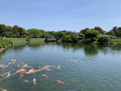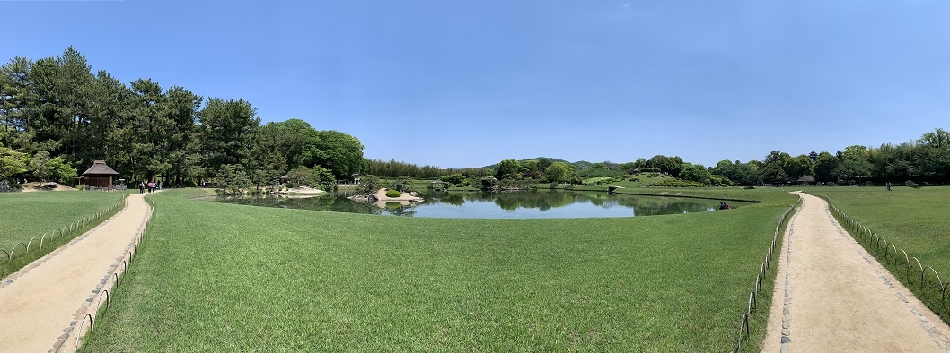岡山市の中心部、北区を流れる旭川の中州に広がる、日本三大庭園とされるうちのひとつです。まず、政令指定都市の中心部近くにこのような広い庭園があることに驚きます。園に入ってみてまず感じたのは芝生が広くて平ら!他の日本三名園である「水戸の偕楽園」「金沢の兼六園」と比べると、開放感が違います。一番良かったのは唯心山からの眺め、沢の池を中心とした後楽園ならではの雄大な景色が広がります。沢の池では、当時話題になっていたウナギも見ることができました。