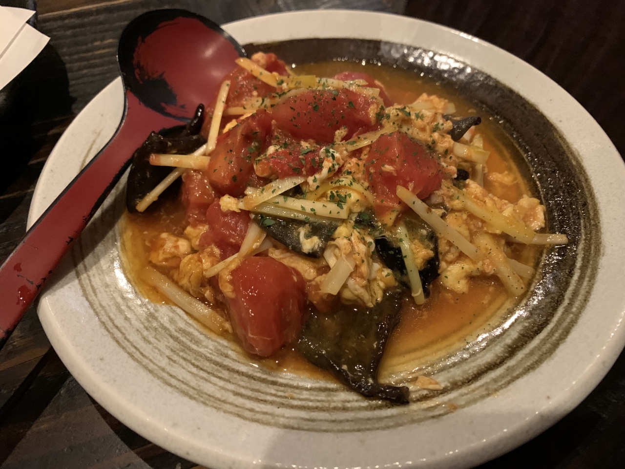 岡山駅前の中心部からは少し離れていますが、岡山料理の店ということでわざわざこの近くにホテルを取って訪れました。軽食屋に見える外観に反し、店内は古民家風。もちろん岡山料理を中心にいただきます。岡山発祥とされる黄ニラの刺身、ママカリの酢漬け、シャコのにぎり、地酒「大正の鶴」、岡山和牛三角のあぶりにぎり、黄ニラと桃太郎トマトの卵とじ、締めはホルモンうどん、美味い岡山料理を存分に味わえました。