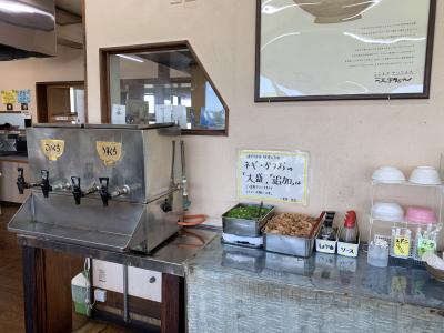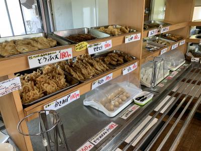 瀬戸内市と備前市の境目、吉井川沿いにあるうどん屋さんです。私が好きな、薬味や出汁を好きなだけ入れられる讃岐うどんスタイルのセルフ方式です。私はかけうどんにかき揚げ天ぷらとあげ、妻は鴨南蛮うどんをチョイス。うどんは国産小麦にこだわり自前の畑で麦から作り、小麦を丸ごと挽く石臼方式で黒みがかった独特なものです。めずらしく、郷土料理の「どどめせ」(炊込みご飯に酸っぱくなったどぶろくを入れた”どぶろくめし”が始まりとされ、岡山ばら寿司の元祖と言われている)を扱っており、もちろんいただきました。こだわりと個性が光るうどん屋さんでした。