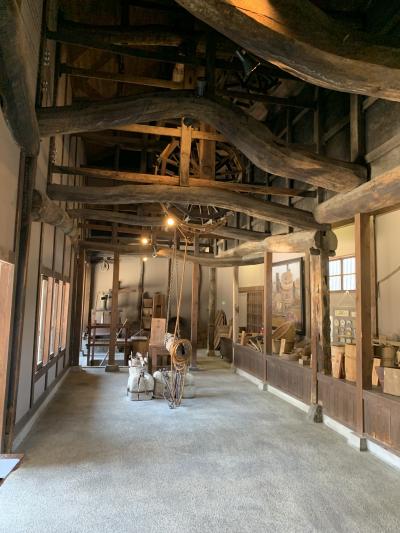 江戸時代末に建築され、明治以降に本瓦葺き入母屋二階作り漆喰塗りという豪邸に成長した、この地で醤油製造業をはじめた藤田千年治氏の邸宅です。内部には当時の醤油工場の様子が再現されています。再現とはいっても、実物を見ると実際に使われていた設備であろうことは想像でき、かなりのタイムスリップ感を味わえます。