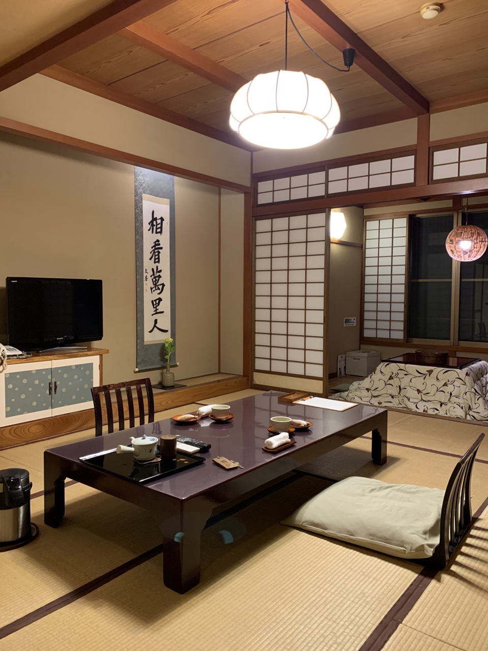 「ばんすいろう ふくずみ」と読みます。創業は寛永2年(1625年)、現在の建物は明治の擬洋風建築として国の登録有形文化財となっていますが、その建物を全景で見れる場所がないのが惜しいところ。時節柄客室を制限しているのか、他のお客さんにはほぼ会いませんでした。昭和棟の客室「花」では、源泉檜風呂付で好きなだけ浸かることができました。大浴場の温泉は泉質も充分で、食事も一品ごとに趣向が感じられました。古くから要人を迎えてきた、派手さをてらわない老舗らしさが出ている宿だと思います。
