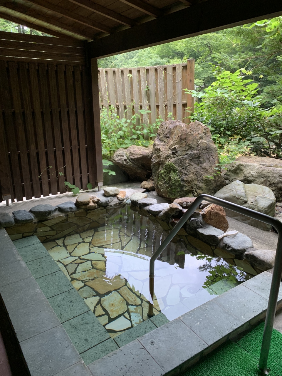 猿ヶ京温泉から赤谷川を上った山の中にある一軒宿です。山奥の一軒宿というと年季が入った建物を想像しますが、古めかしさはあまり感じないきちんとした旅館です。この宿の売りは湯治に適した「ぬる湯」で温度は39℃、涼しい山中とも相まって夏でも長めに入れました。泉質と湯量は抜群です。露天とぬる湯の内湯は混浴ですが女性は湯あみを借りて(有料)入ることができます。男女別の風呂もあります。料理は量控えめのプランでしたがちょうどよく、イワナや鹿肉鍋などの山の幸を美味しくいただきました。料金もお手頃で穴場の温泉かと思います。