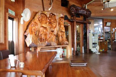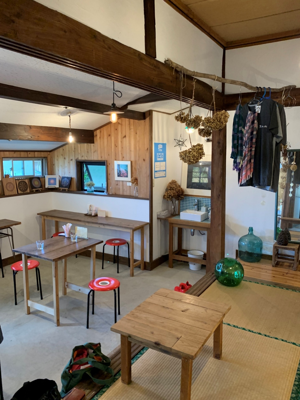 志戸子ガジュマル公園の隣にある、小さなカフェです。古い民家を改装した店内は、下町の飲み屋みたいなテーブルとイスですが、いい味出していて嫌いじゃないです。キッシュとホットコーヒー、フォカッチャサンドとオレンジジュースをオーダーしました。この場所でこのような良いカフェブレイクができるとは予想していませんでしたので、妻がご満悦でした。