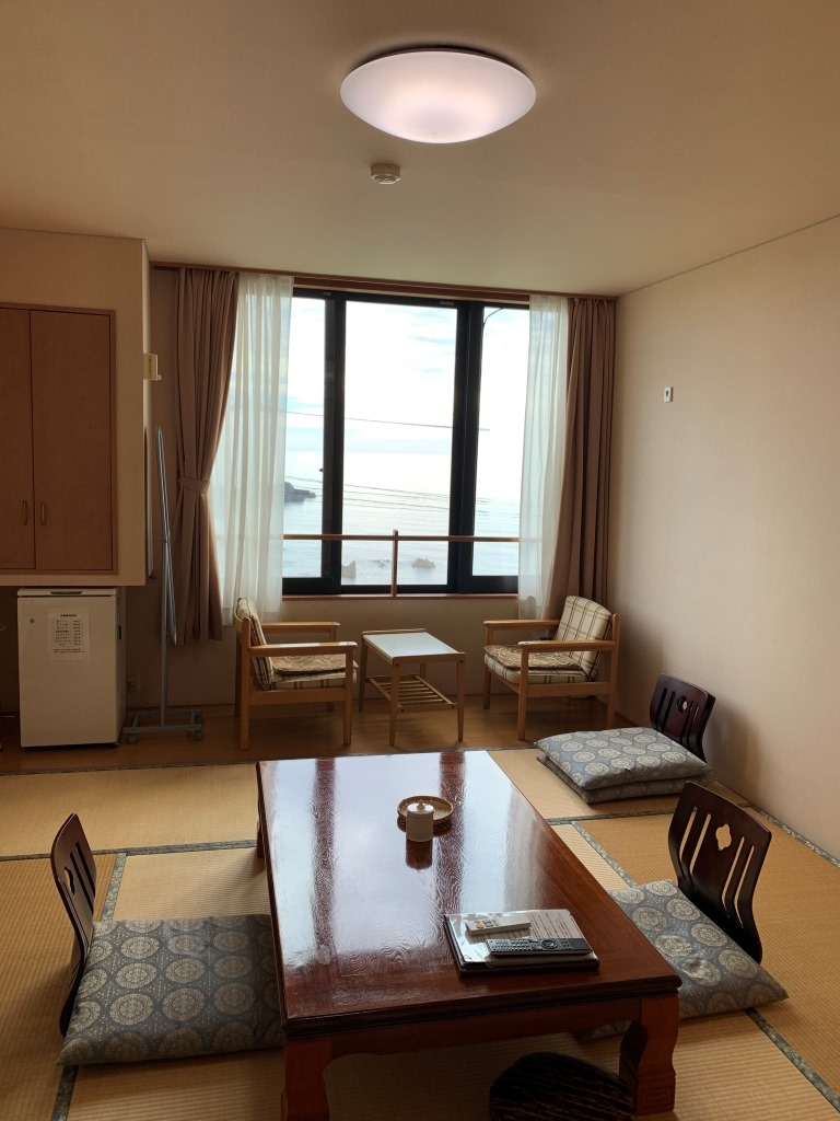 日本海を一望する春日崎の高台に建つ宿です。入るといきなり玩具が並んでいて見るからに家族経営のアットホームな雰囲気。客室はちょっと変わったレイアウトでしたが冷蔵庫もあり問題なし。温泉は内湯だけで広くは無いですが窓を開けると半露天の様で良かったです。食事は海の幸をふんだんに使い野菜などは有機栽培無農薬とのこと。料金相応の家族経営的な規模とサービスでした。隣にでっかいホテルがありましたが、こっちで良かった。