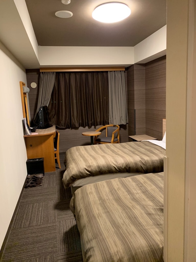 足利の歴史地区の鑁阿寺(ばんなじ)の真ん前にあるホテルです。足利学校もすぐ近くです。駐車場はホテルの目の前が5台、そこが満杯だと歩いて1分の裏手のPになります。コンパクトな建物のホテルですが客室は思いのほか余裕があり(バスルームはちょっと狭いが)設備はしっかりしていて、フロントの対応も丁寧です。氷も無料でペールにたくさんくれます。朝食は品数が多いとは言えませんが充分で、個人的には生卵でTKGが食べられるのは嬉しかったです。総合的にコスパは高いと感じました。