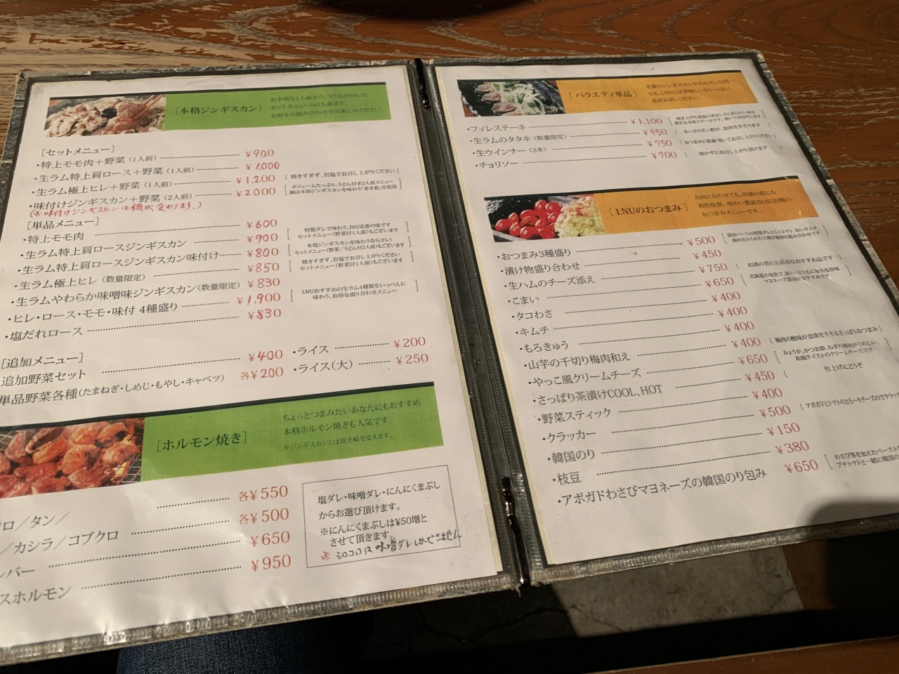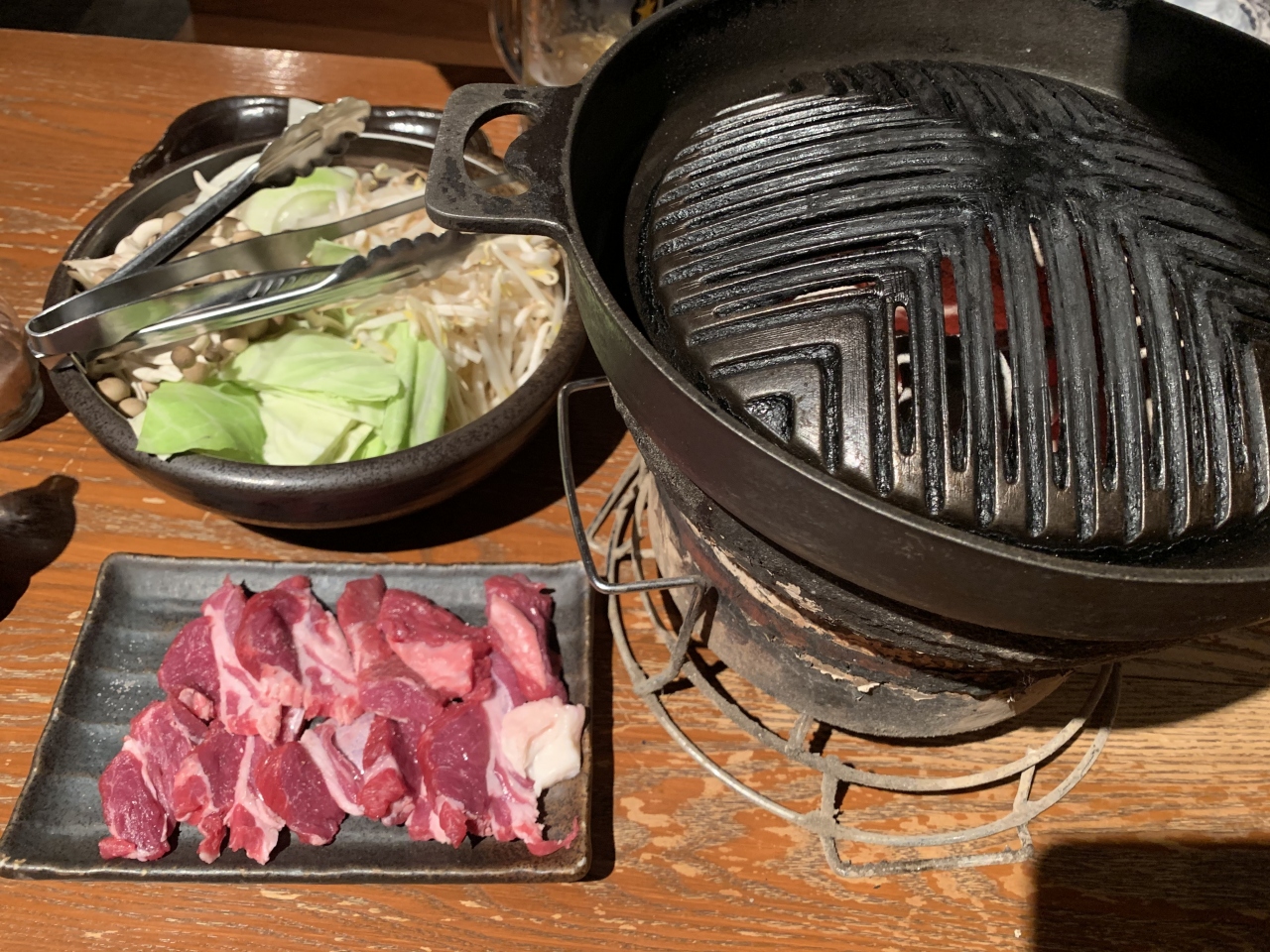 小田急小田原線の伊勢原駅から徒歩約5分、生ラムを七輪で焼く本格ジンギスカンのお店です。ジンギスカン鍋で炭火焼、生ラムはクセがなくジューシー、肉汁が染みた野菜とともに美味しくいただきました。”山芋の千切り梅肉和え”や”生ラムのタタキ”など、サイドメニューも色々あります。店長さんが北海道出身だけに本格的なジンギスカンが味わえる店で、週末ということもありほぼ満席でした。