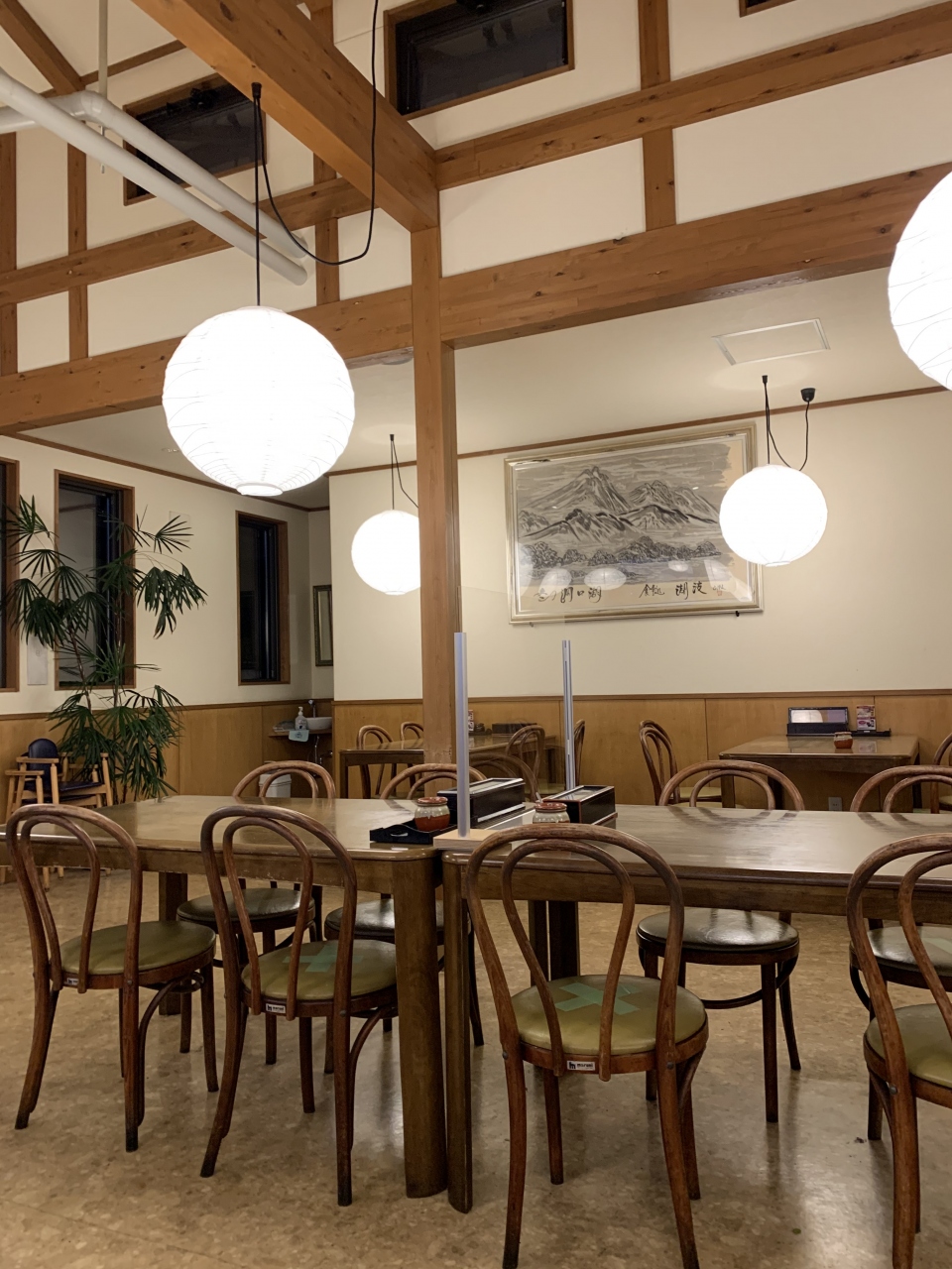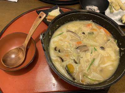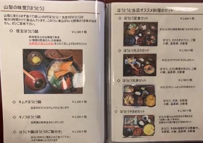 河口湖の東岸、ホテルの隣にあったので訪ねてみた甲州郷土料理の食事処です。店内は天井が高く席の配置も余裕があり開放的な空間です。甲州名物馬もつ煮込みは甘味噌風味でクセもなく、脂少なめでヘルシーなもつ煮でした。ワカサギの天ぷら、そして最後はやはり”信玄ほうとう鍋”で締め。山梨ではいろんなところでほうとうを食べましたが、ここのほうとうは美味いと思います。
